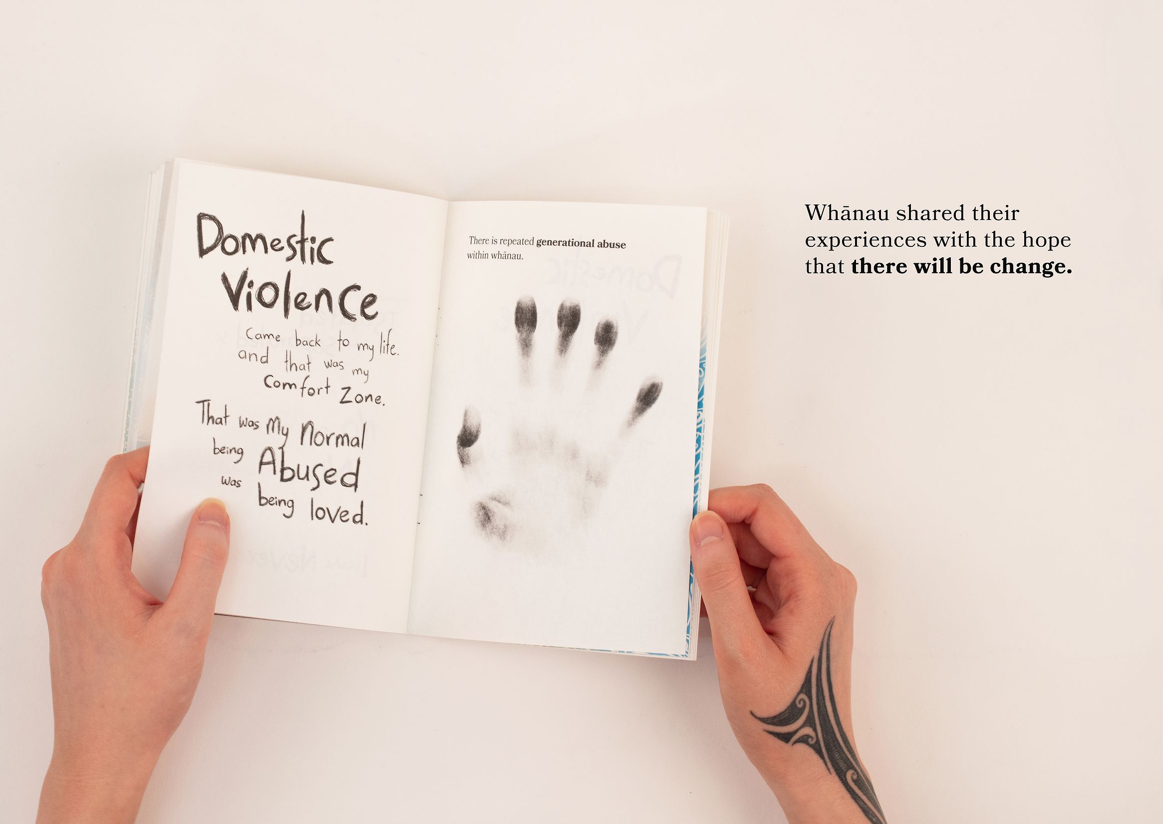 A través de wānanga (encuentros comunitarios), las familias compartieron historias de vida, crianza, desafíos y reflexiones sobre lo que podría haberles ayudado. En ese contexto, el diseño no podía ser un ejercicio decorativo; debía ser un gesto de honor, un vehículo para sostener la memoria y devolver el mana a quienes lo habían perdido en procesos dolorosos. Esta orientación convierte el proyecto en una obra profundamente ética, donde el diseño gráfico actúa como mediador entre la vulnerabilidad y la dignidad.