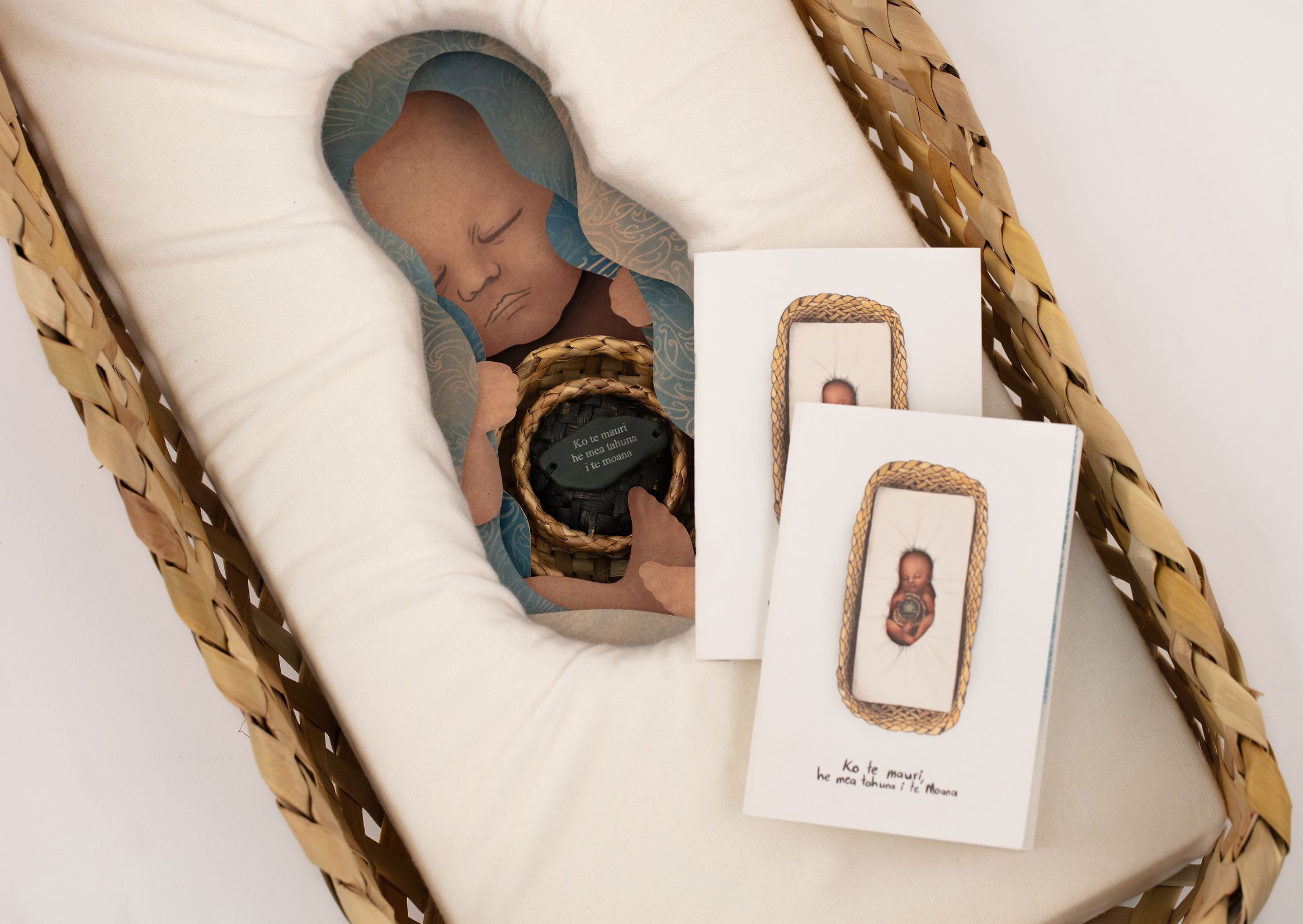 Las ilustraciones creadas por Jordan Tane se inspiran en elementos de la cosmovisión Māori: el océano como espacio de renacimiento, el tejido (raranga) como metáfora de conexiones fracturadas y reanudadas, la luz como símbolo de whānau ora (bienestar familiar). Esta simbología no es un añadido estético, sino un lenguaje visual profundamente cultural, capaz de hablar directamente a las personas para quienes la pieza fue hecha.