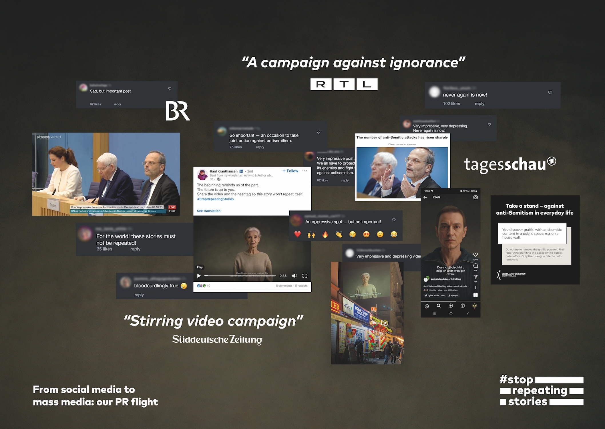El impacto de #StopRepeatingStories no se explica solo por su fuerza creativa; también por una estrategia de comunicación digital bien orquestada. La campaña se lanza en colaboración con la comunidad del Consejo Central de los Judíos en Alemania e influencers clave como Raul Krauthausen o Culcha Candela, que ayudan a amplificar el mensaje en redes sociales.
