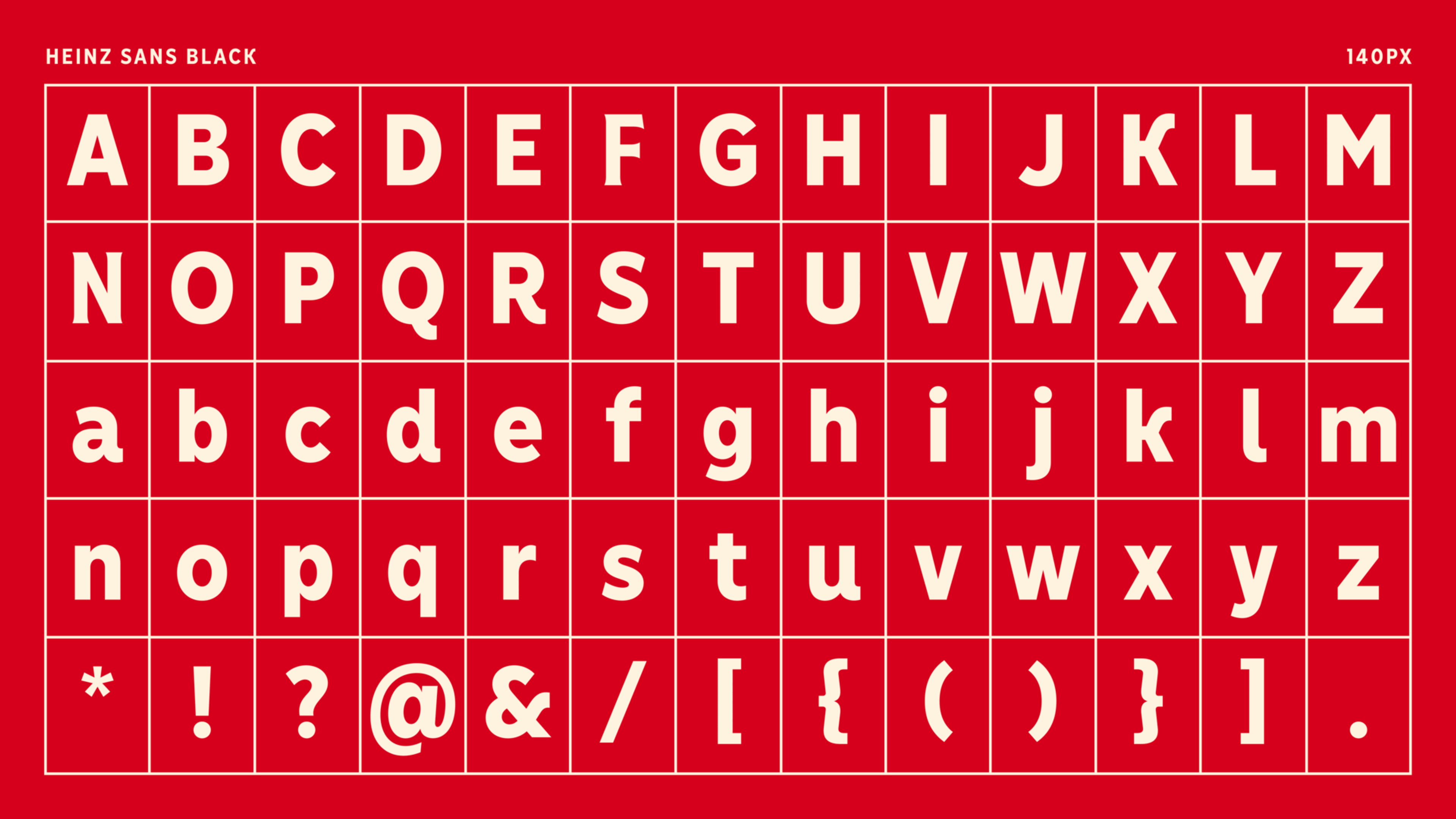Heinz Typeface fue diseñada para rendir en cualquier contexto imaginable: desde una botella en la puerta de una nevera hasta una campaña exterior, pasando por carruseles de ecommerce en mercados asiáticos.