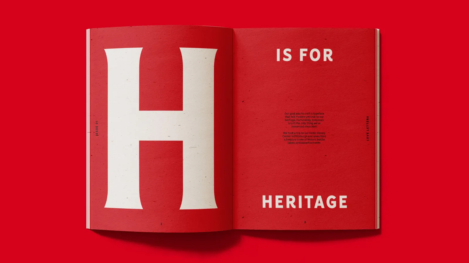 El nivel de dedicación detrás del proyecto es extraordinario. Más de 600 horas de trabajo fueron necesarias para dar forma a la familia tipográfica. Para celebrar este esfuerzo, el equipo creó Heinz: Love Letters, un zine editorial que funciona como una declaración de amor a la tipografía.
