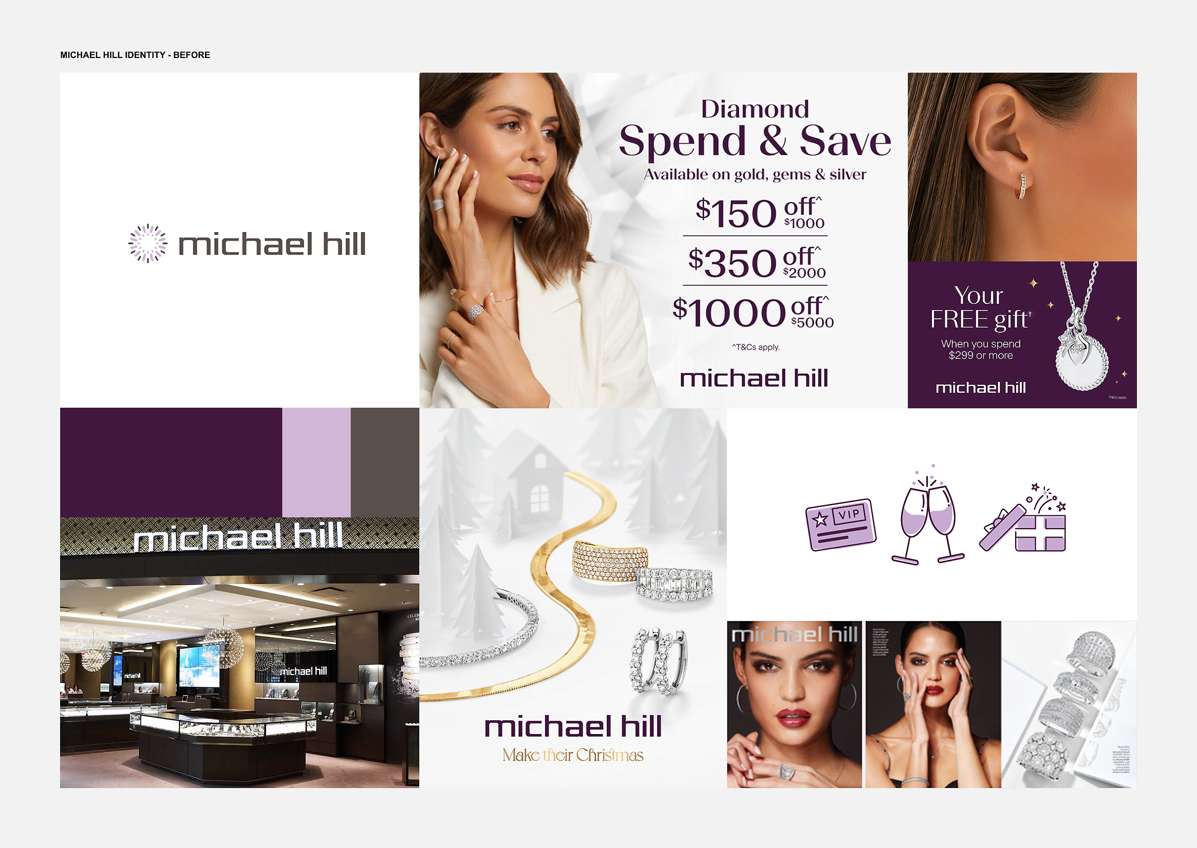 El nuevo logotipo conserva la herencia reconocible de Michael Hill, pero la estiliza mediante líneas más limpias y proporciones equilibradas.