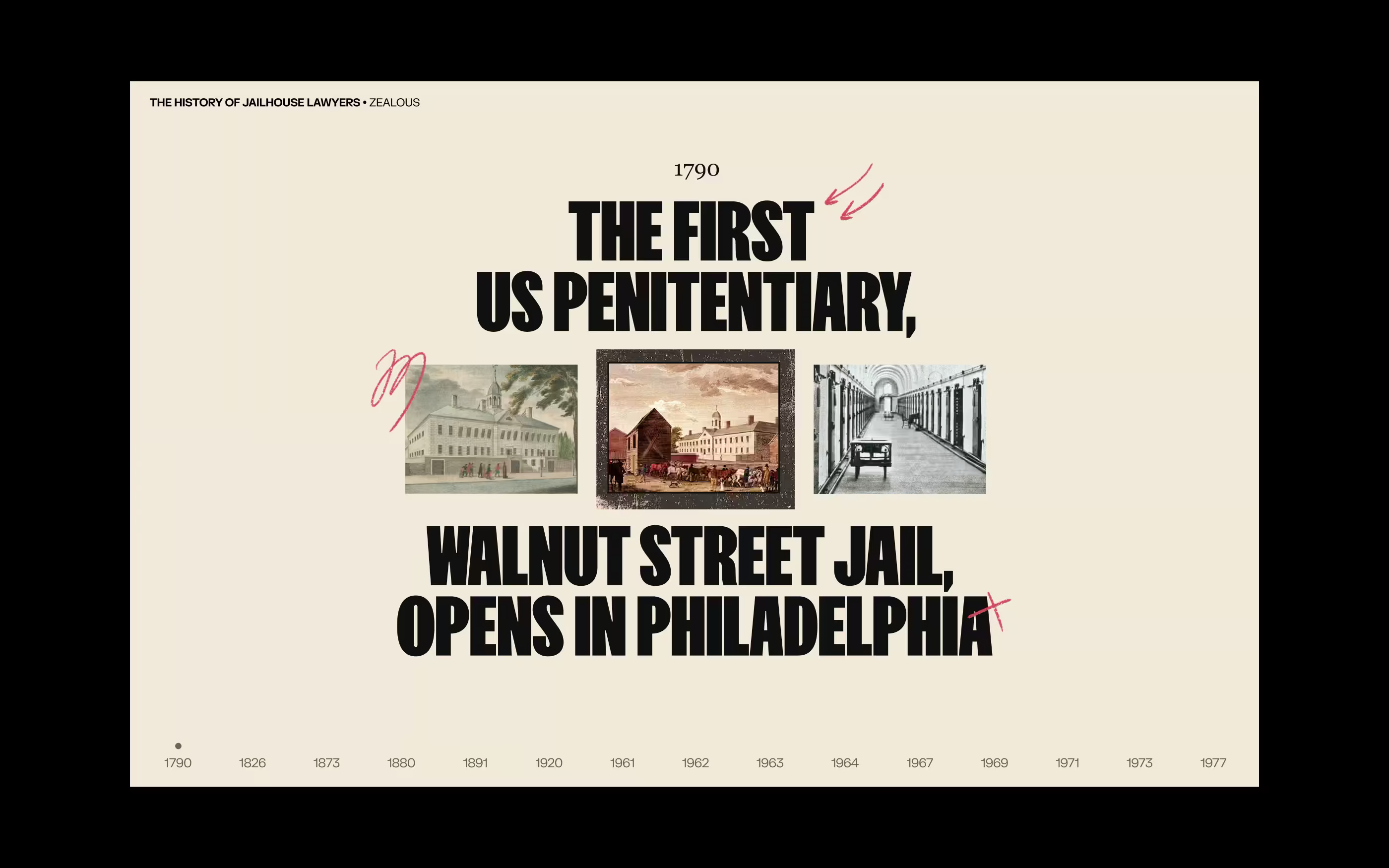 Para resolver la densidad del contenido, Tubik opta por un recurso clásico pero poderosísimo cuando se ejecuta bien: una línea del tiempo interactiva. En lugar de presentar un texto largo e inabarcable, la historia de los jailhouse lawyers se fragmenta en etapas y momentos clave que el usuario puede explorar de forma secuencial o saltando a los hitos que más le interesen.