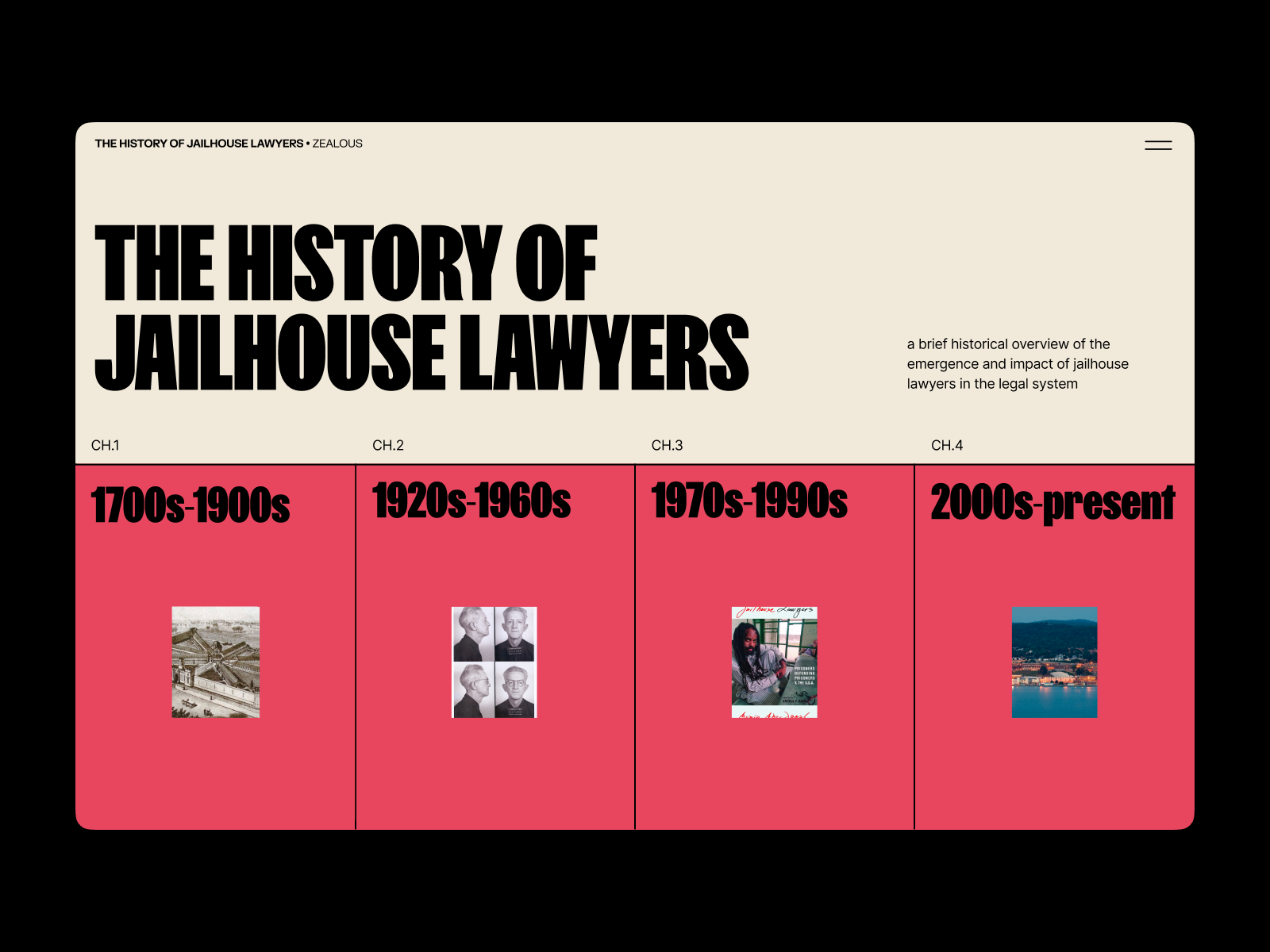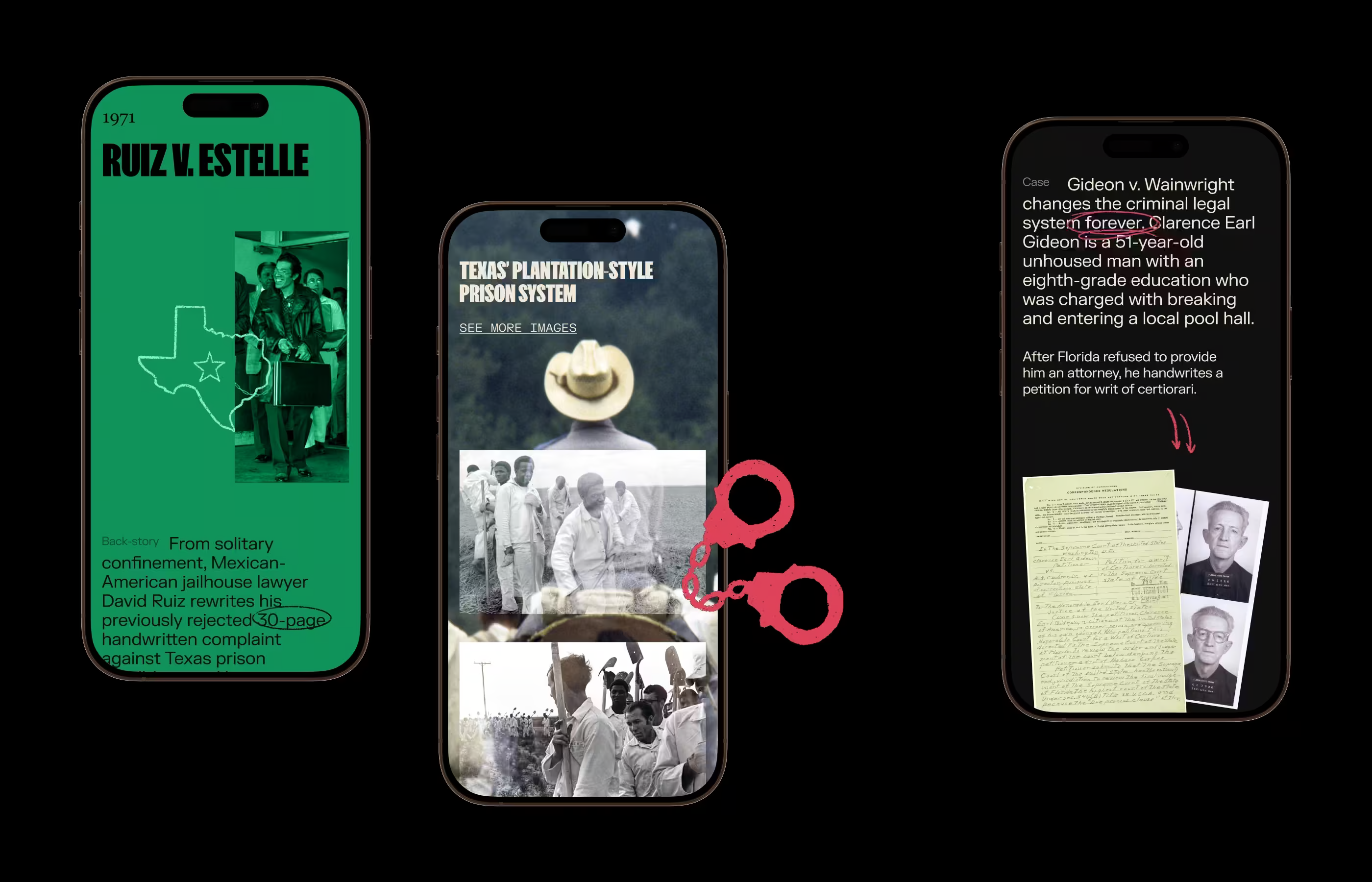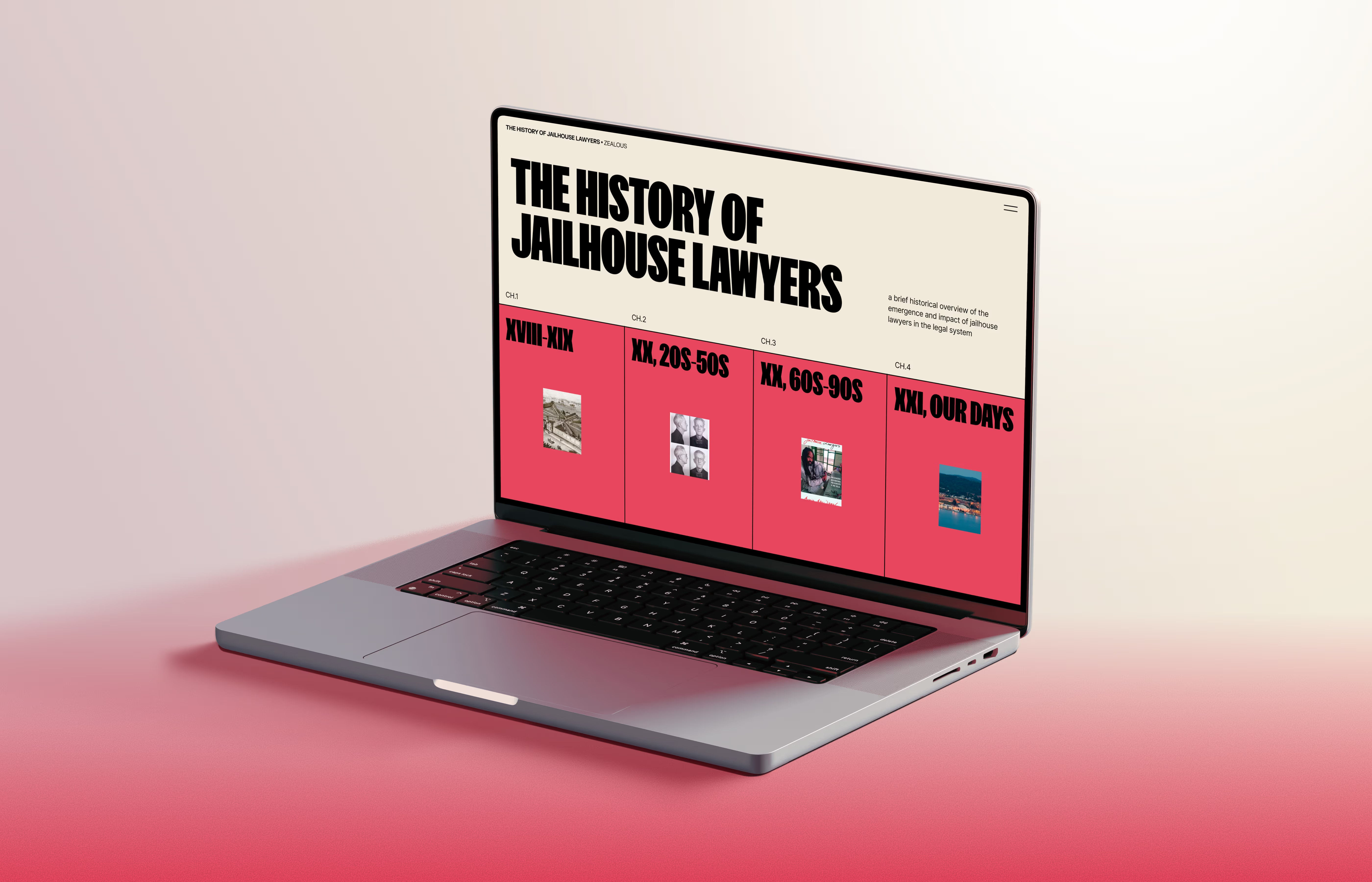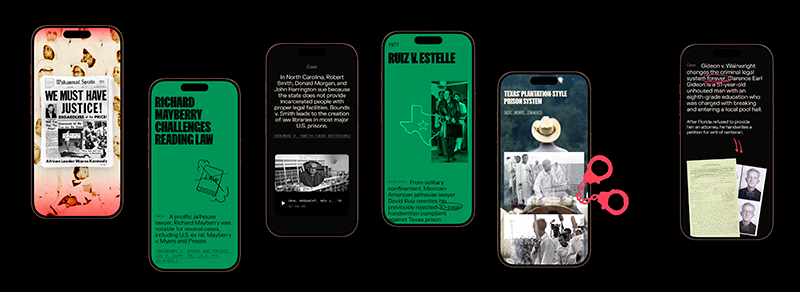 Flashlights es una sección interactiva que forma parte de un sitio existente y que narra la historia y el impacto de los jailhouse lawyers: personas encarceladas que, sin formación académica formal, aprendieron derecho por su cuenta y se convirtieron en defensores legales dentro de las prisiones. El reto era monumental: transformar un contenido denso, histórico y legal en una experiencia clara, accesible y emocionalmente potente.