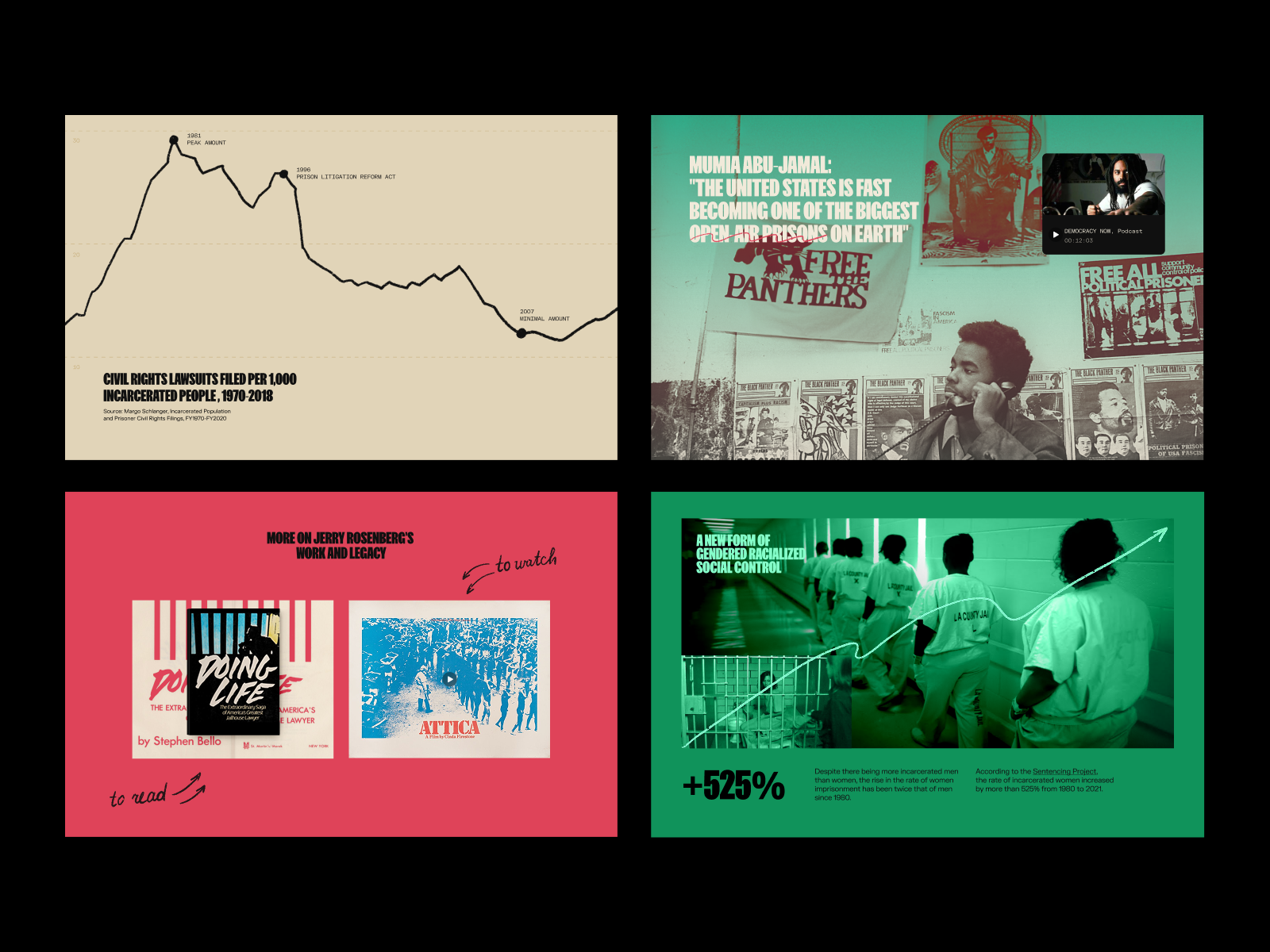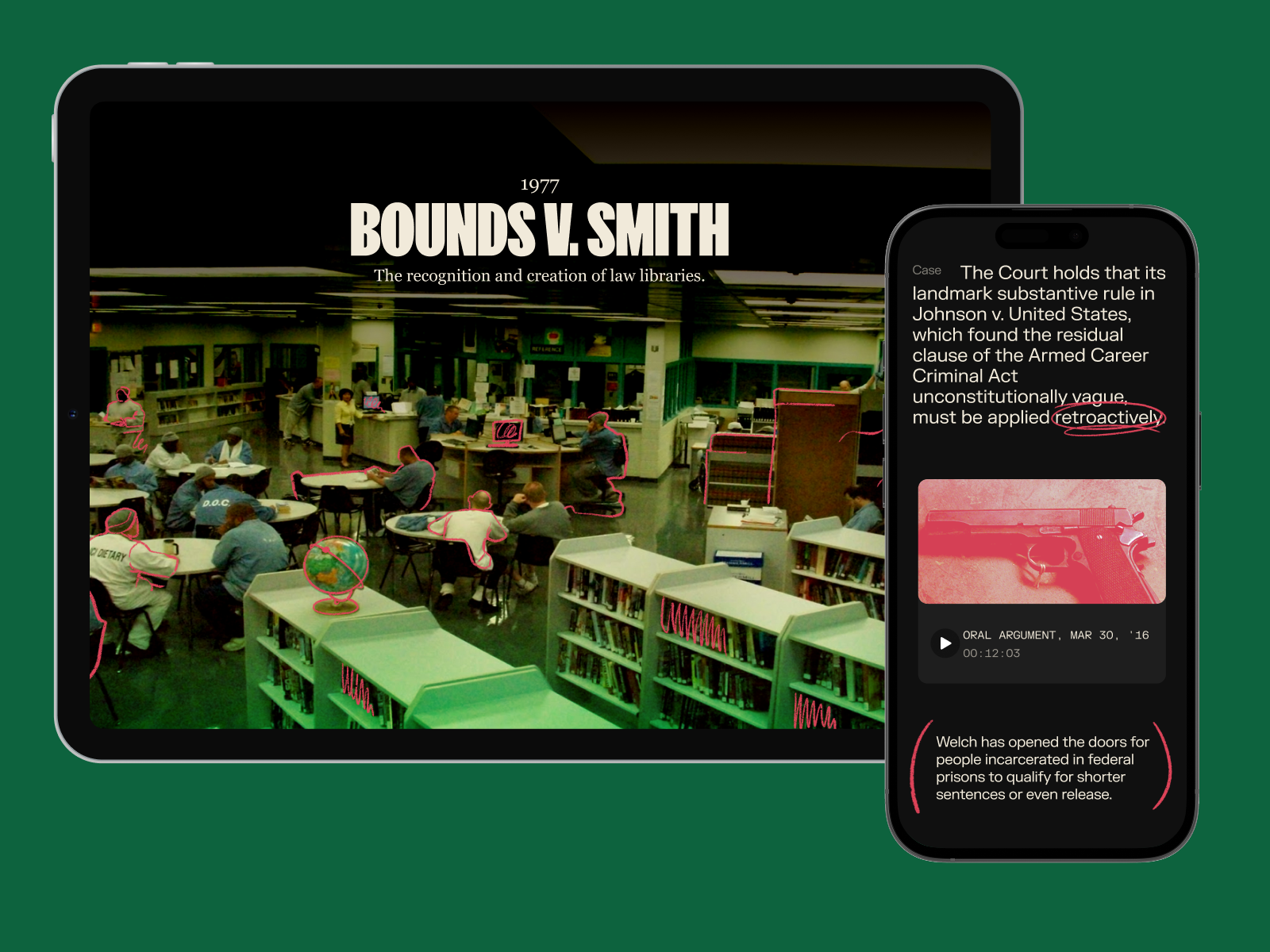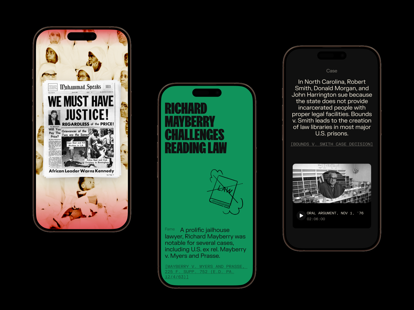 Flashlights es una sección interactiva que forma parte de un sitio existente y que narra la historia y el impacto de los jailhouse lawyers: personas encarceladas que, sin formación académica formal, aprendieron derecho por su cuenta y se convirtieron en defensores legales dentro de las prisiones. El reto era monumental: transformar un contenido denso, histórico y legal en una experiencia clara, accesible y emocionalmente potente.