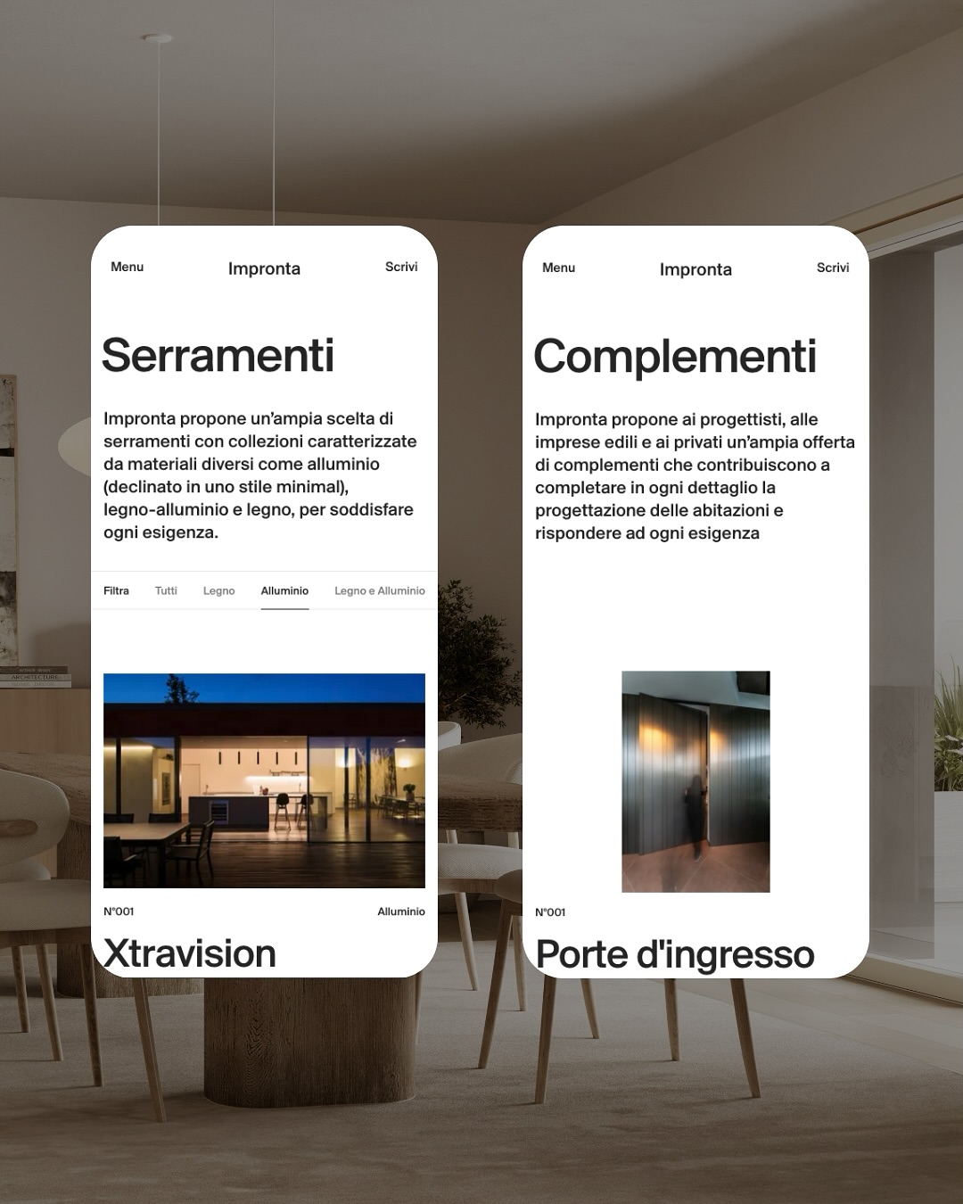 La estructura visual de Impronta respira con ritmo arquitectónico: modular, silenciosa y precisa.