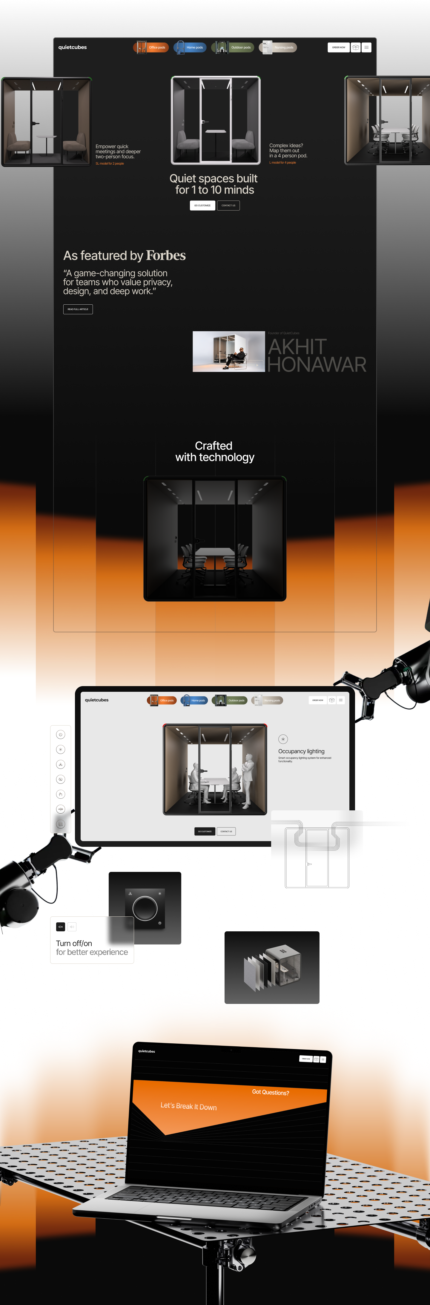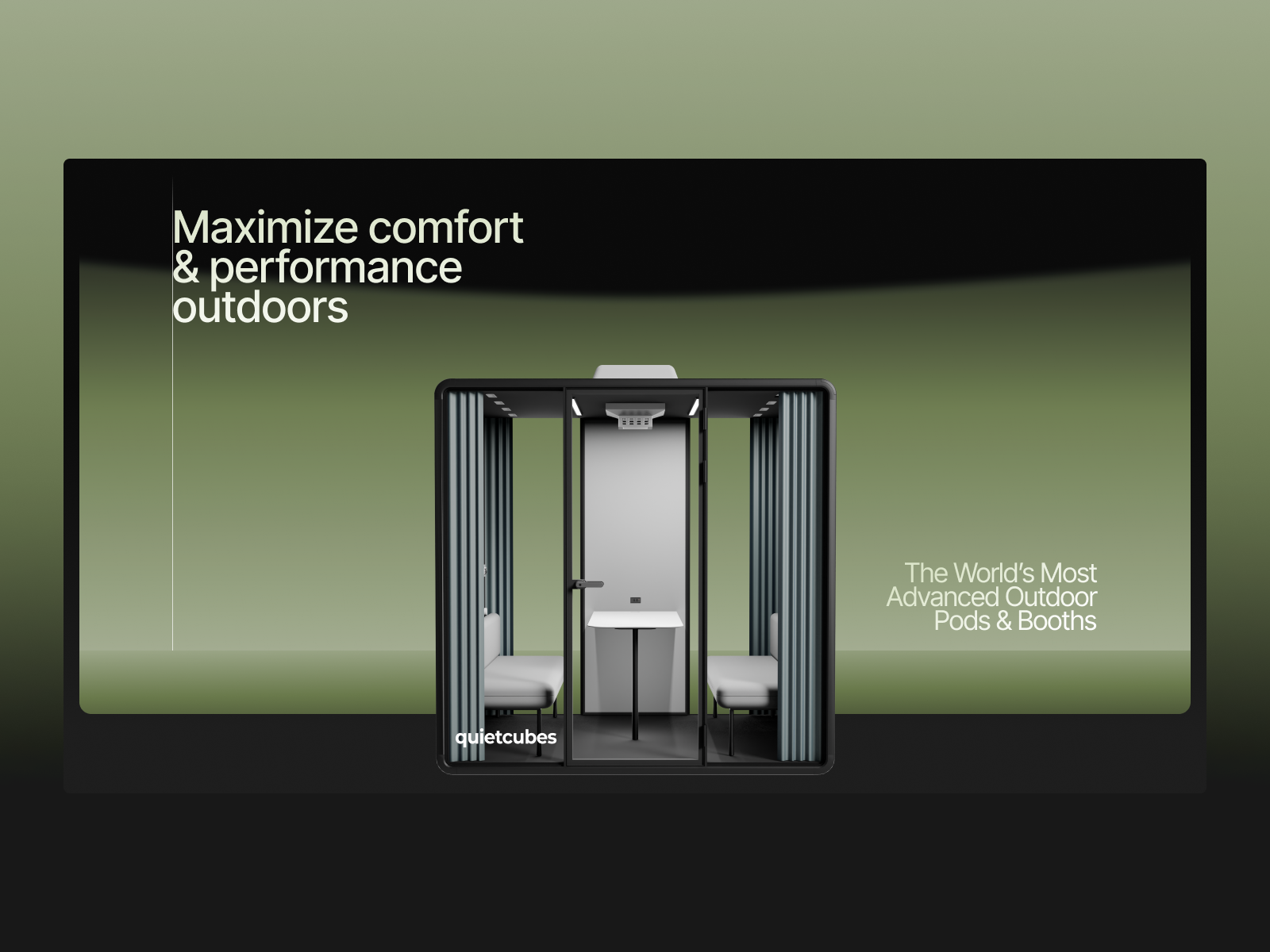 QuietCubes se presenta como una marca especializada en la creación de pods insonorizados para trabajar, descansar o mantener reuniones privadas en cualquier entorno. Su propuesta de valor combina ingeniería acústica, diseño minimalista y una experiencia sensorial basada en la luz. La nueva web —reconocida internacionalmente— traduce esa filosofía en una experiencia digital sutil, silenciosa y elegante, creada para transmitir calma desde el primer segundo.