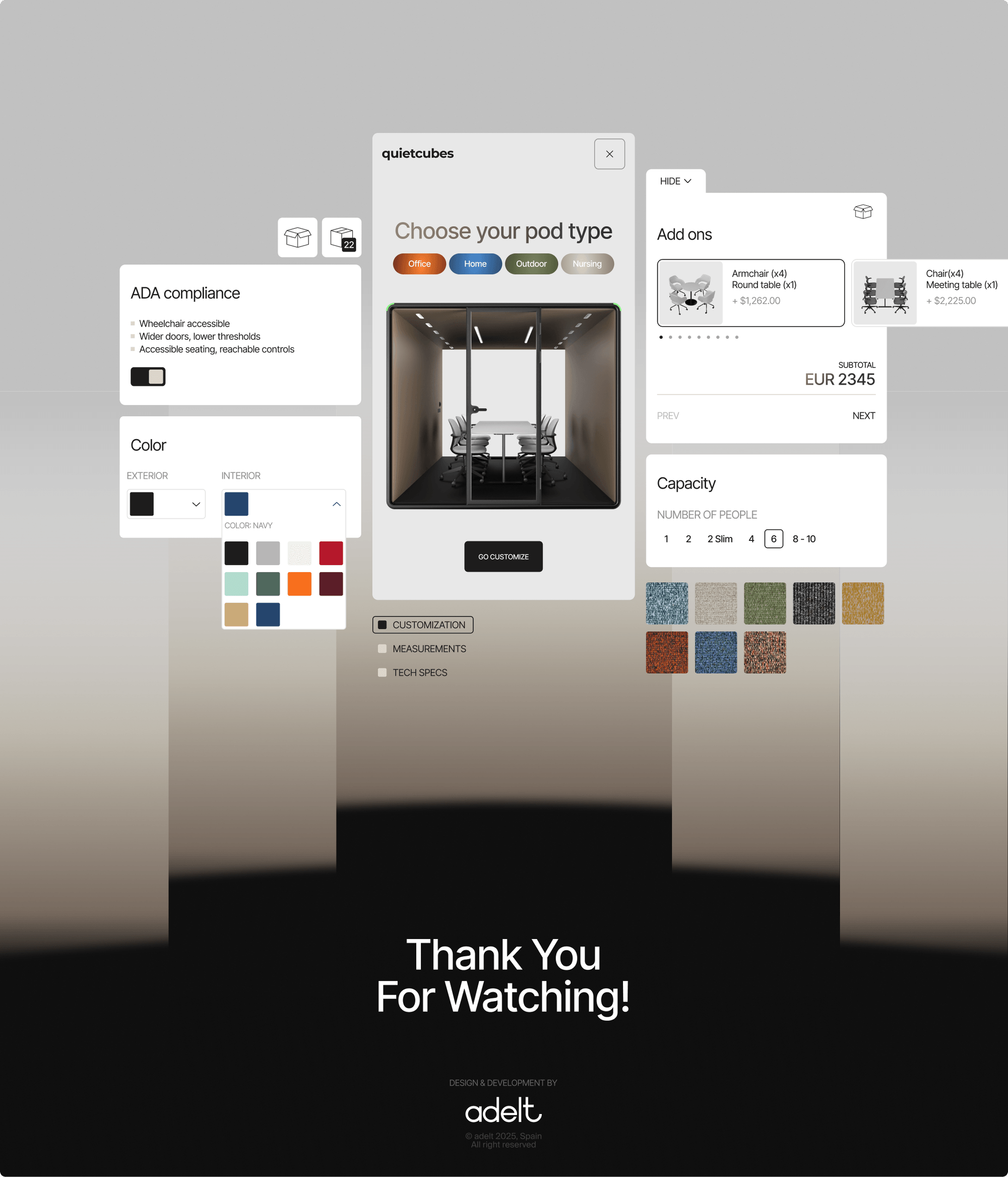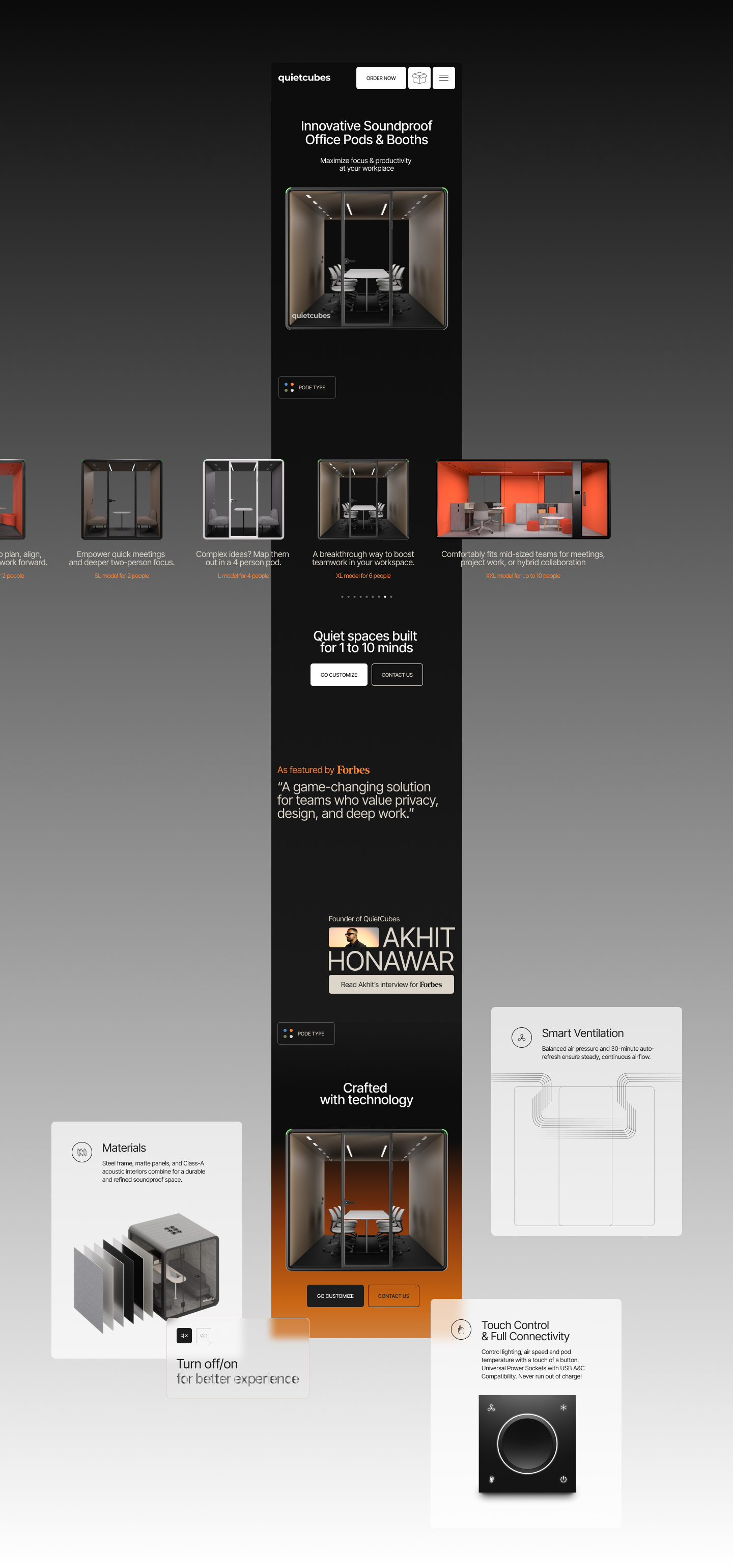 La arquitectura de información refuerza este enfoque: se eliminan menús sobrecargados y se prioriza un sistema de navegación visual que recuerda al diseño industrial del producto. La historia del pod se cuenta en capas, igual que las capas de aislamiento acústico: primero la idea, después la forma, luego los materiales, y finalmente la posibilidad de configurarlo.