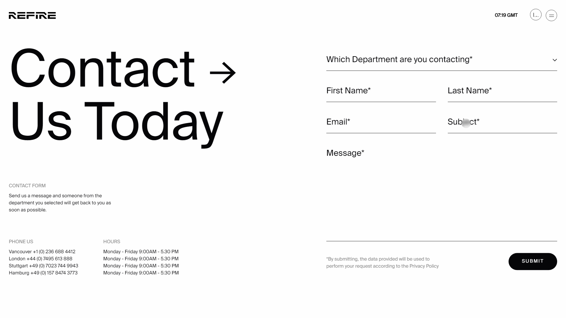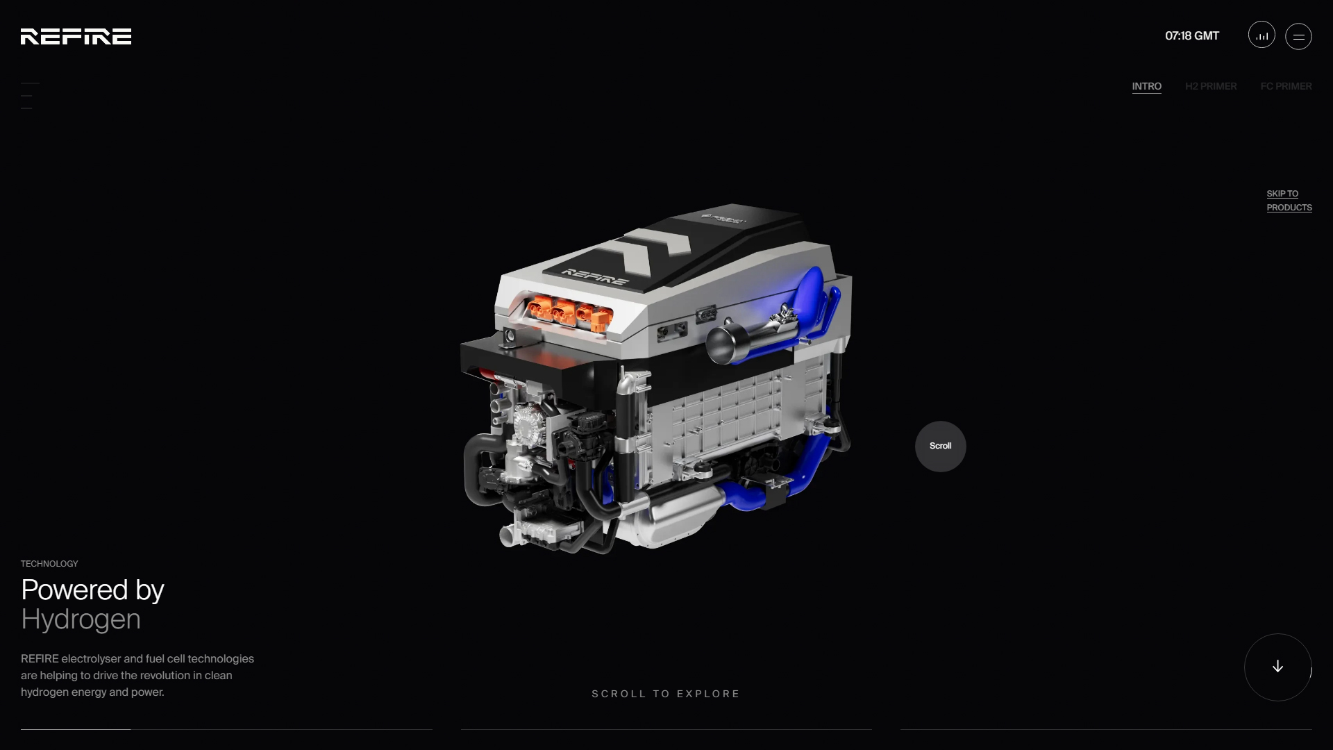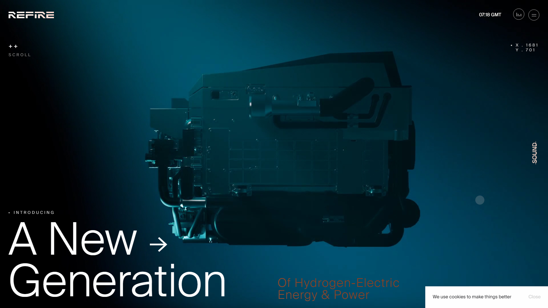 El sitio web REFIRE, desarrollado por CUSP y SALT AND PEPPER , representa una innovadora generación de energía y potencia hidrógeno-eléctrica. Este sitio no solo comunica la visión de REFIRE sobre el futuro de la energía, sino que también ofrece una experiencia interactiva y visualmente atractiva que capta la atención de los visitantes.