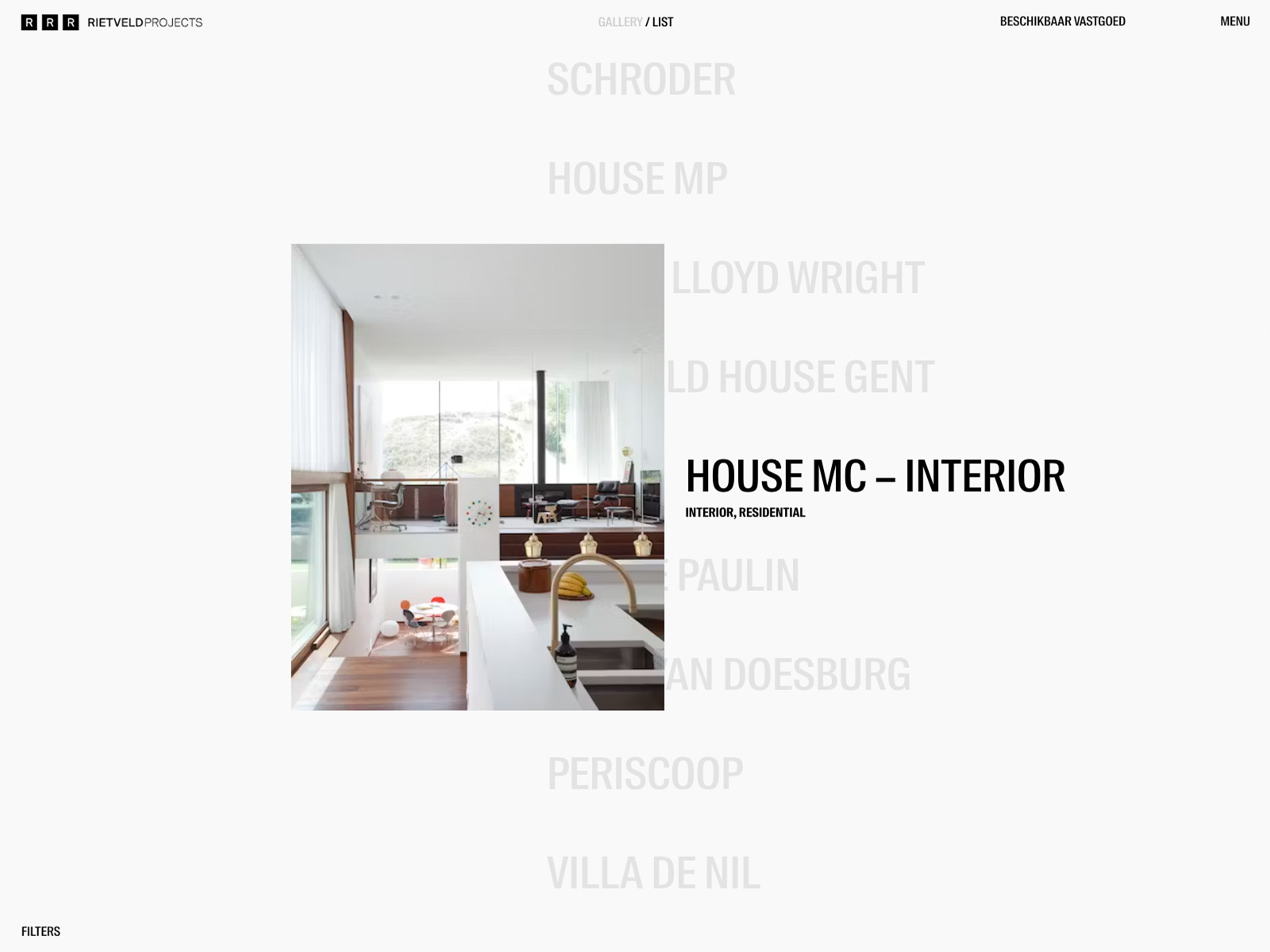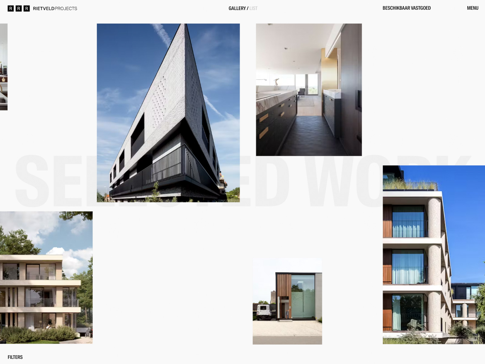 El sitio web Rietveld Projects, creado por Gewest13, es una plataforma de portafolio que representa a Rietveld Projects, un sello de calidad para la arquitectura atemporal. Este sitio destaca por su diseño minimalista y su enfoque en la presentación clara y efectiva de los proyectos arquitectónicos.