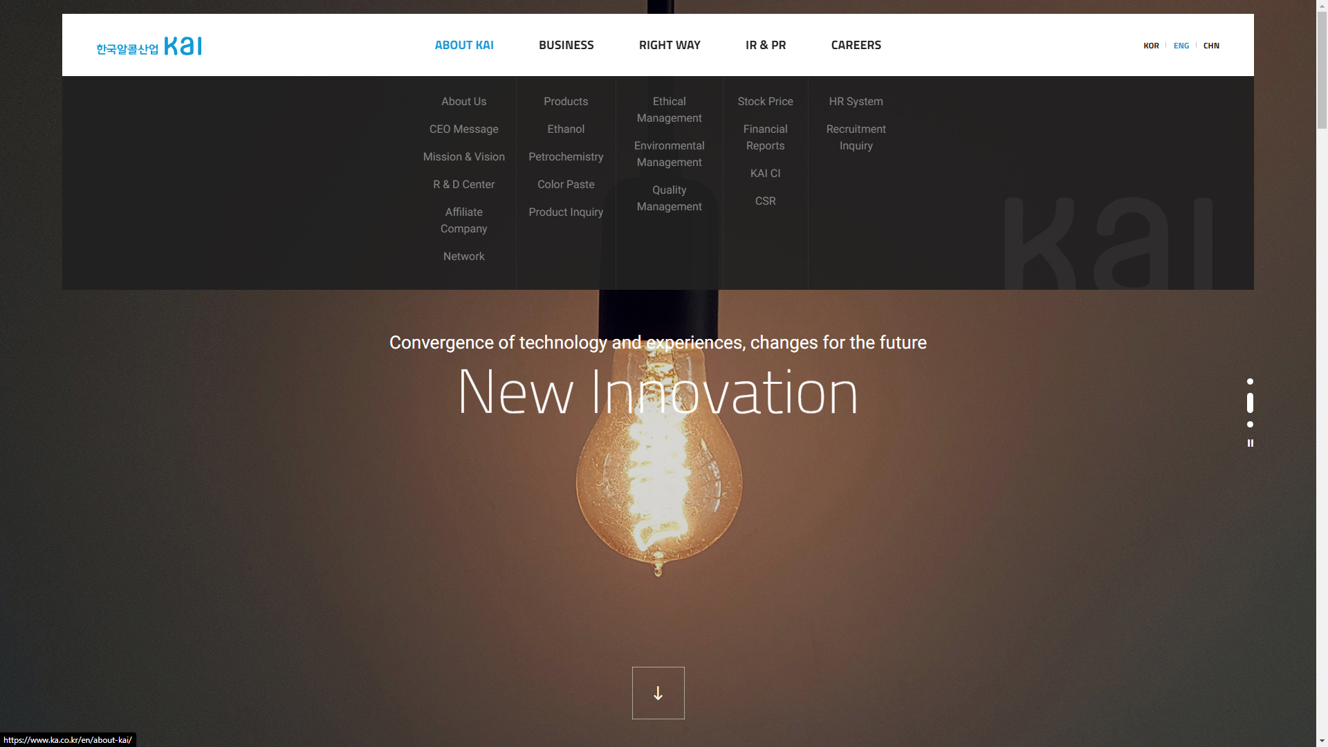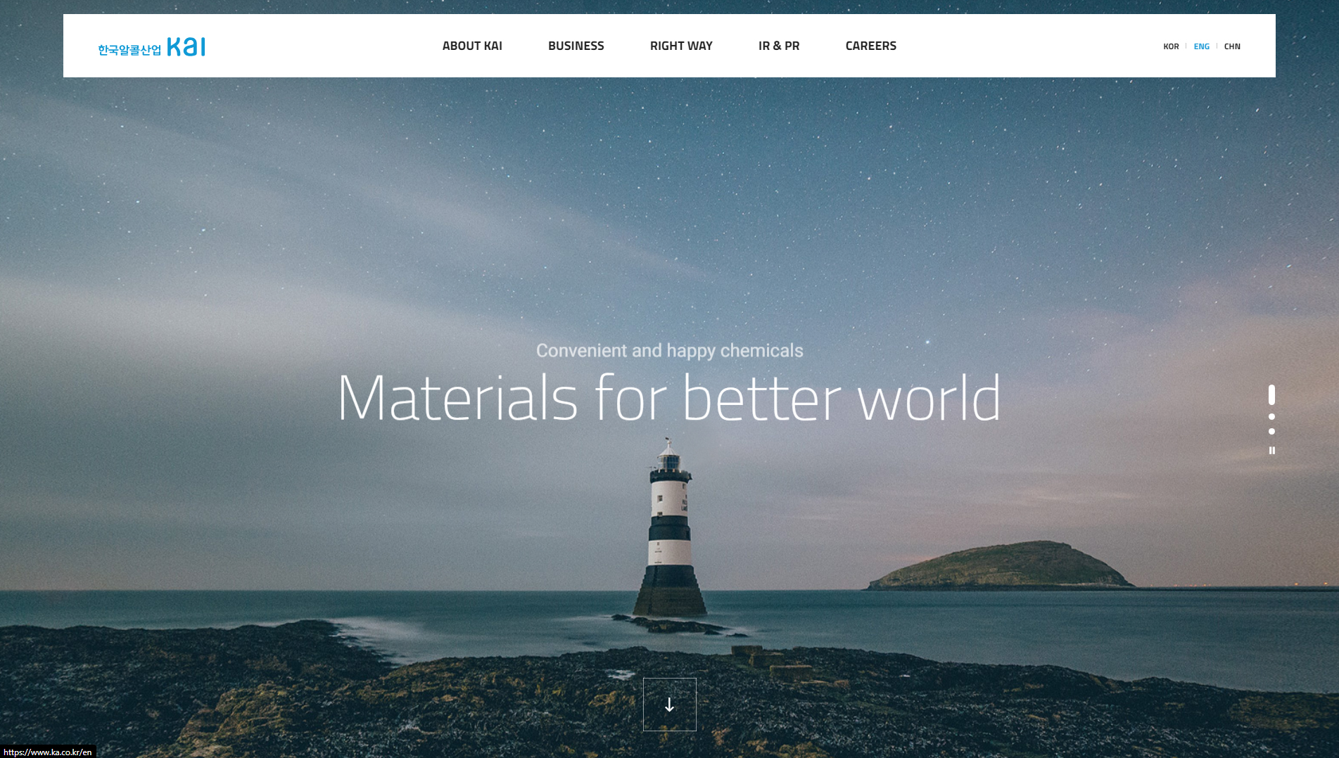 El sitio web KAI, desarrollado por STUDIO-JT, representa a Korea Alcohol Industrial, el principal fabricante químico del país. La misión de la empresa es crecer continuamente para contribuir a un mundo más conveniente y feliz, y su sitio web refleja esta filosofía a través de un diseño moderno y funcional.