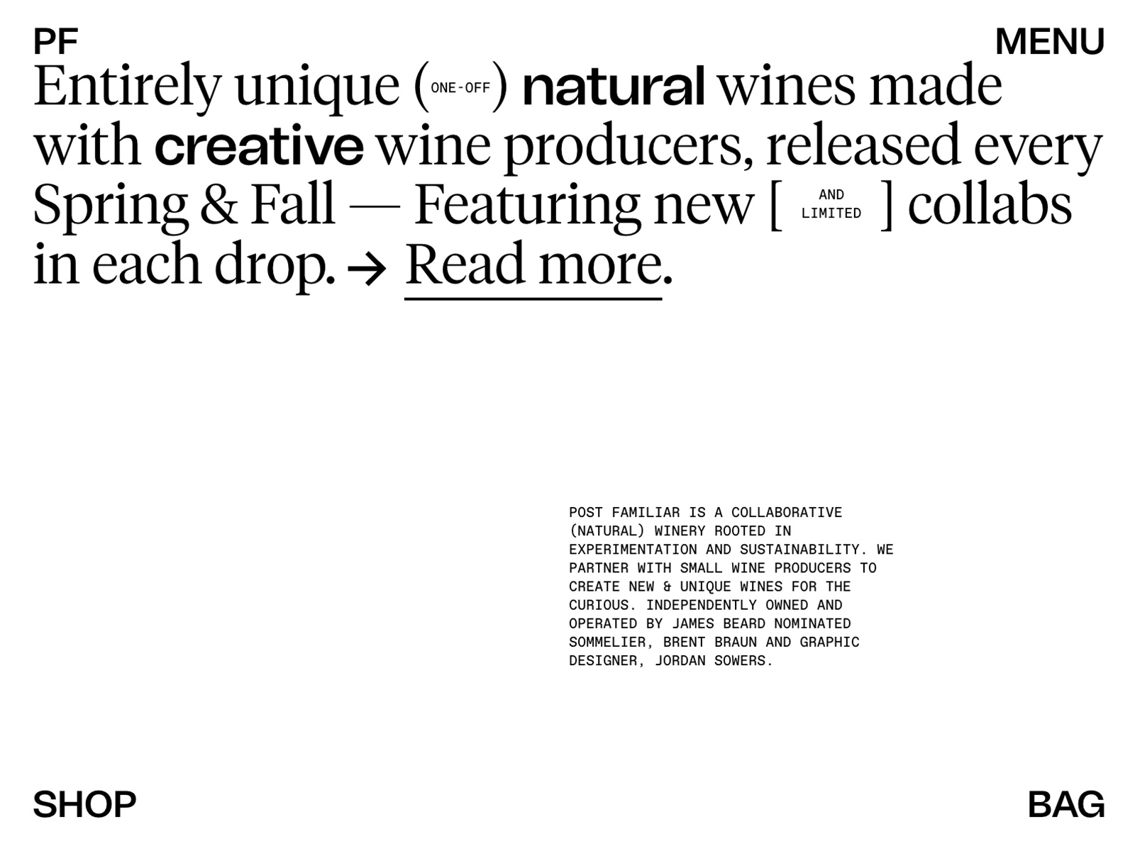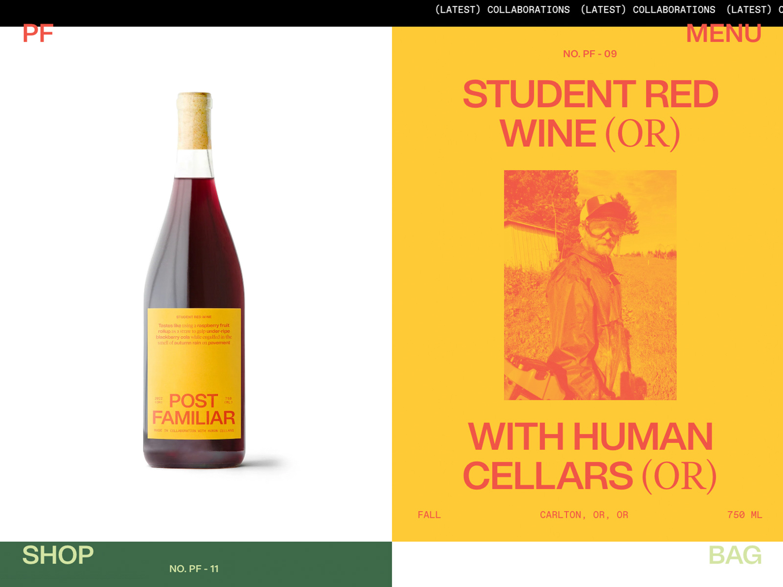 El sitio web Post Familiar Wine, creado por Jordan Sowers, se presenta como una plataforma vibrante y atractiva para una bodega colaborativa que se enfoca en la experimentación y la sostenibilidad en la producción de vino. Este sitio es un claro reflejo de su filosofía, mostrando un enfoque innovador hacia la creación de vinos únicos en colaboración con pequeños productores.