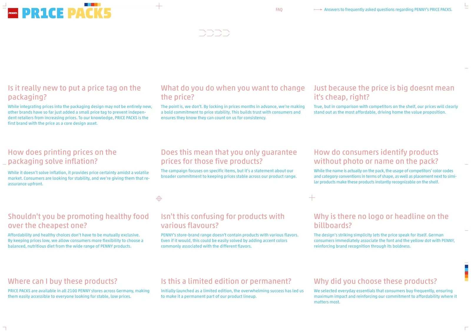 Tot i la radicalitat de la proposta, Price Packs no trenca amb la identitat de PENNY. Elements clau com el característic punt groc i la tipografia Akko es mantenen com a referents visuals.