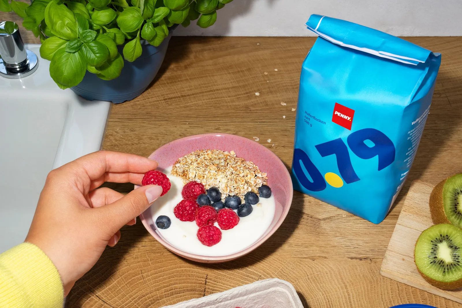 Per al llançament inicial, PENNY i Serviceplan van escollir cinc productes bàsics de la seva marca pròpia: sal, maionesa, civada, pa de motlle i patates fregides. Productes de consum freqüent, alta rotació i preus històricament estables.