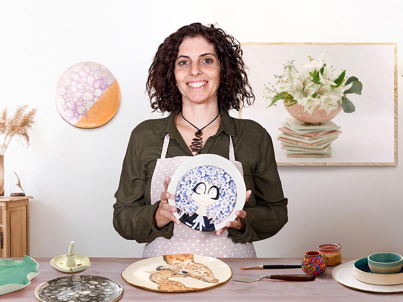 Fa més de 15 anys que es dedica al món de l’art, tant com a docent, muralista o dissenyadora de ceràmica.