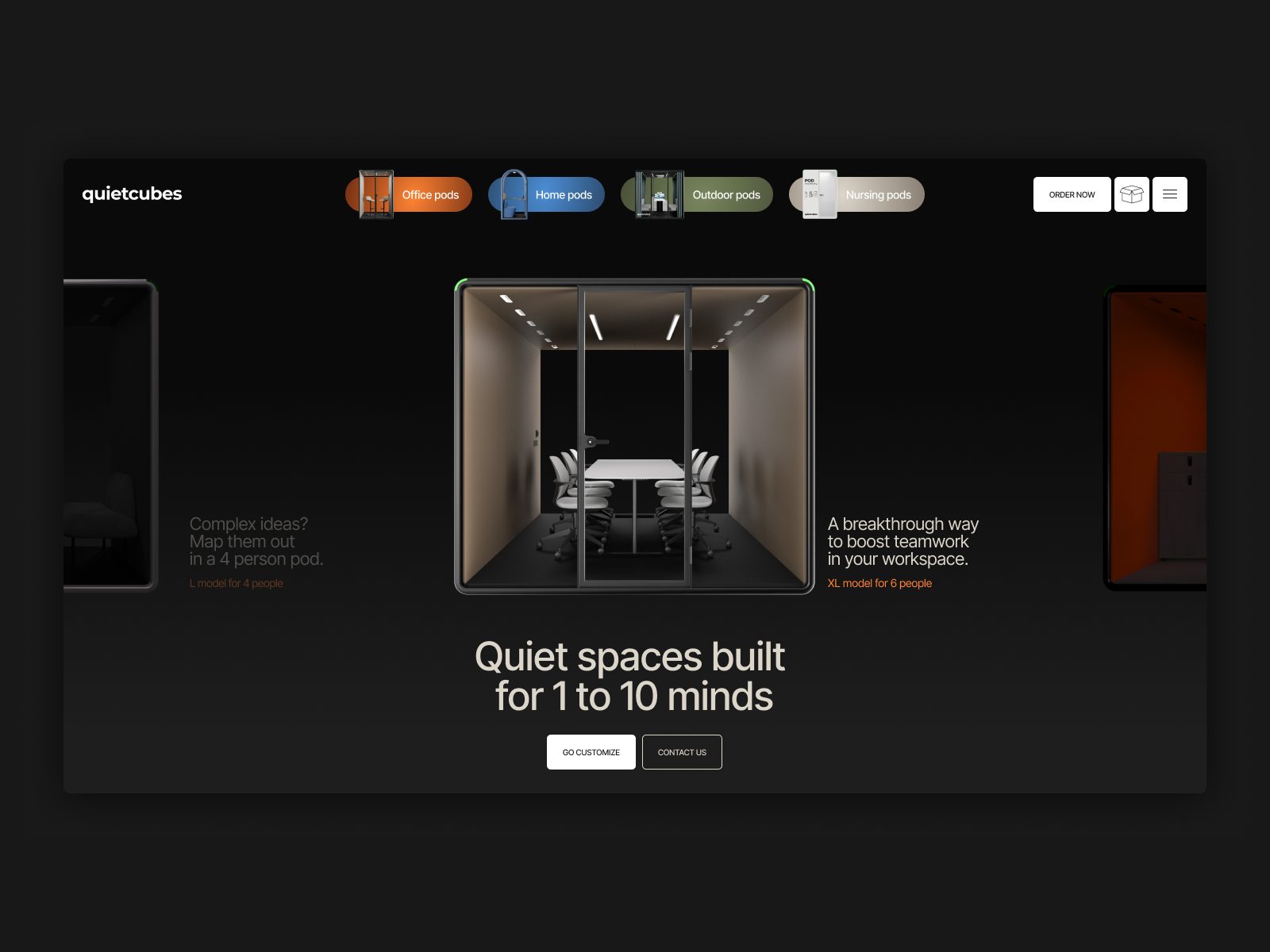 QuietCubes té una identitat basada en l’estètica del silenci: materials suaus, geometries pures, confort minimalista. La web trasllada aquests pilars al llenguatge digital amb una coherència admirable.