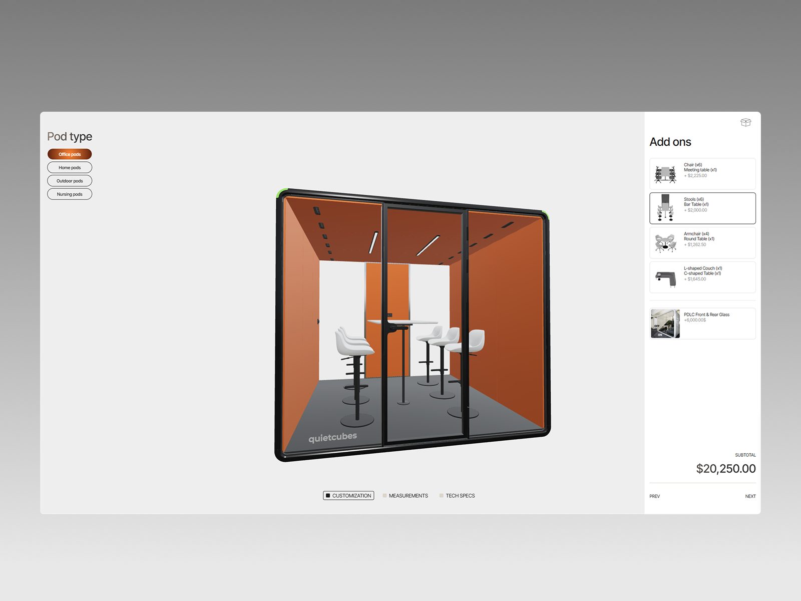 L’arquitectura de la informació reforça aquest enfocament: s’eliminen menús carregats i es prioritza un sistema de navegació visual que recorda el disseny industrial del producte. La història de la cabina es desplega en capes, com les capes d’aïllament acústic: primer la idea, després la forma, a continuació els materials i, finalment, la possibilitat de configurar-la.