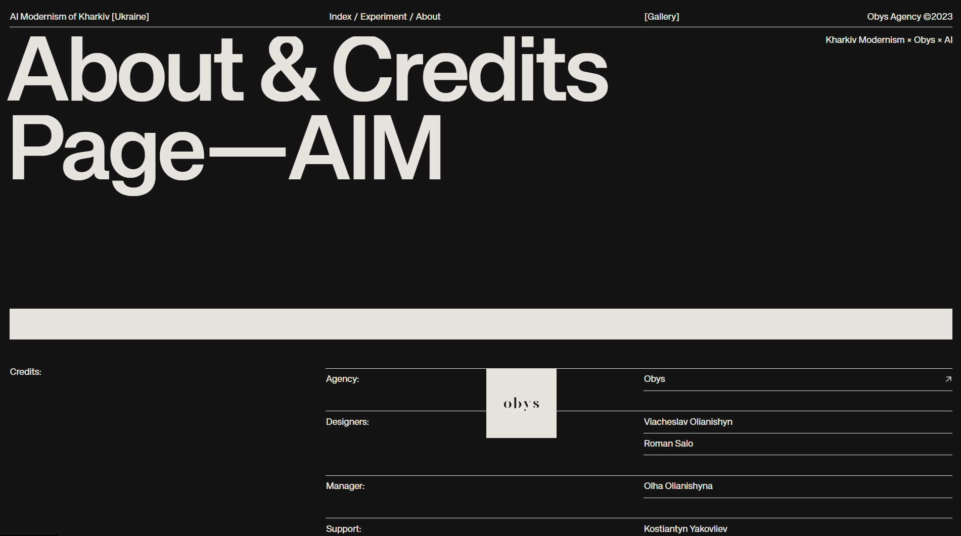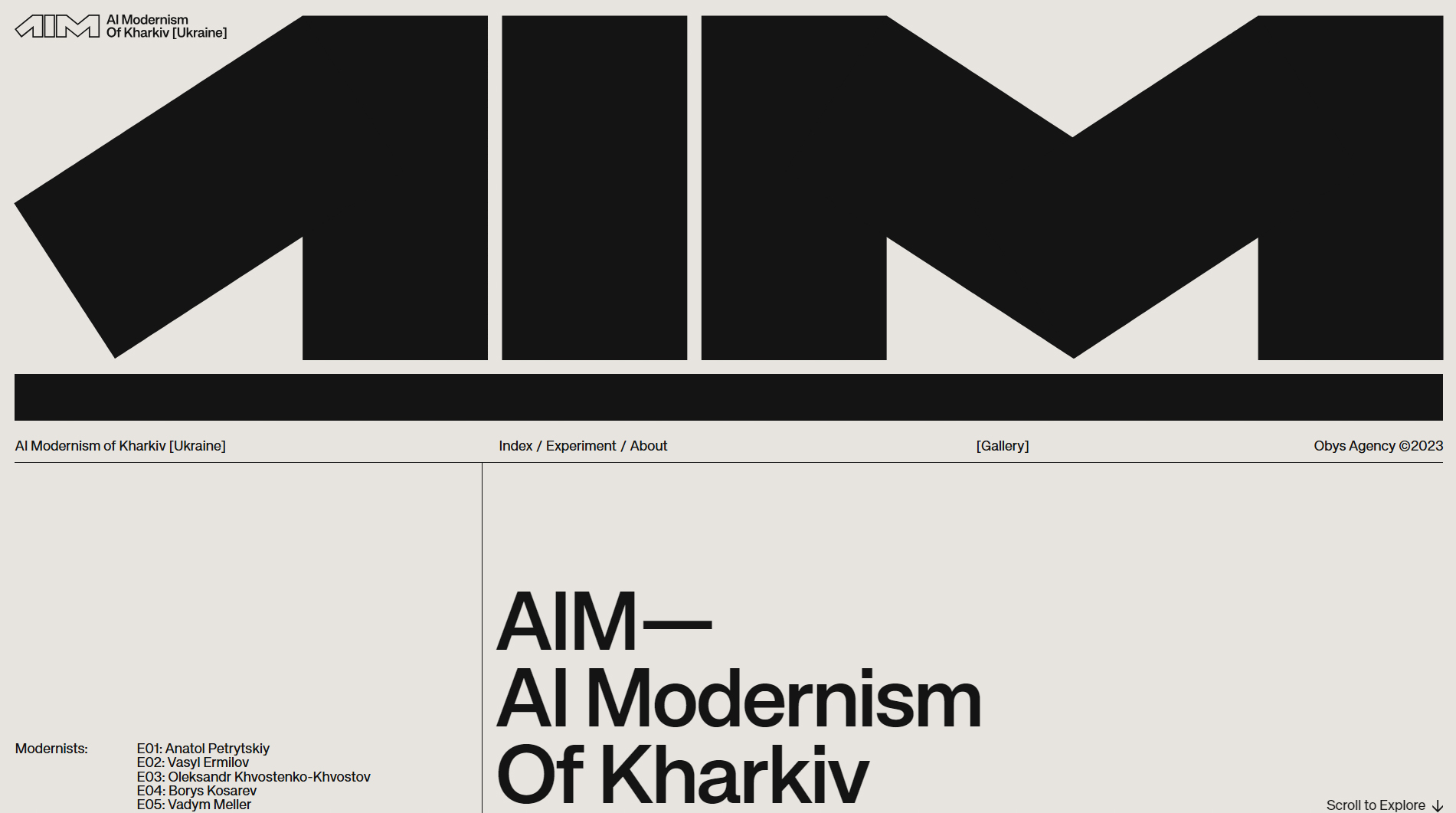 La web AIM — AI Modernism of Kharkiv és un homenatge visual al modernisme arquitectònic de Khàrkiv, Ucraïna, impulsat per la intel·ligència artificial. Creat per Obys Agency i Viacheslav Olianishyn, el disseny captura l’essència del moviment modernista i utilitza tecnologia d’avantguarda per oferir una experiència digital única.