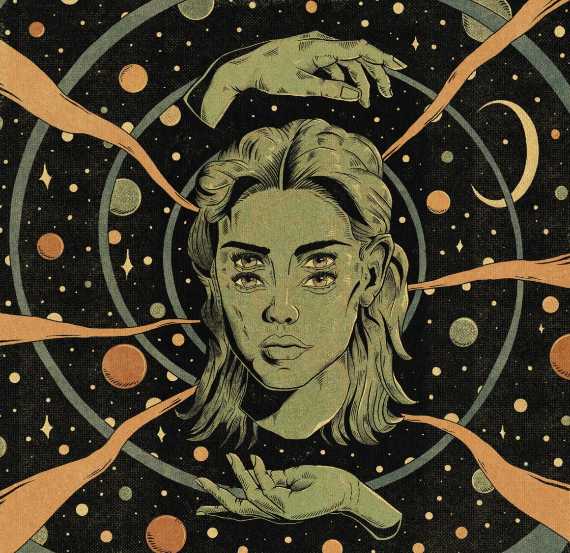 Una de les tendències en disseny gràfic de 2023 que apareix aquest any i que és hereva de l’època hippy nord-americana i de la tradició europea de principis del segle XX és el misticisme.