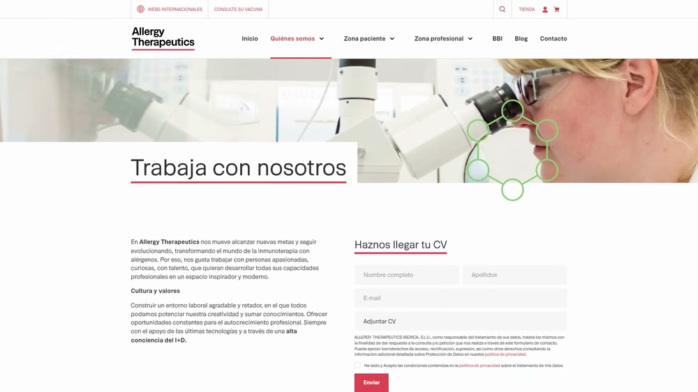 La secció corporativa estructura la trajectòria, l’activitat, els valors i la capacitat operativa dins d’un mateix relat. Això facilita comprendre la dimensió de l’empresa, el seu enfocament en immunoteràpia i el seu paper dins d’un entorn farmacèutic altament especialitzat.