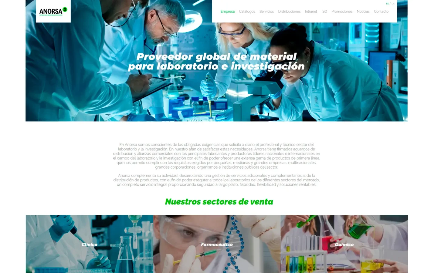 Disseny i desenvolupament web per a Anorsa, empresa especialitzada en la distribució de material de laboratori per als sectors farmacèutic, químic, industrial i universitari. El projecte se centra en l’estructuració i jerarquització dels continguts com a base del sistema, implementant una plataforma WordPress que permet a l’equip gestionar de manera autònoma el seu catàleg i continguts.
