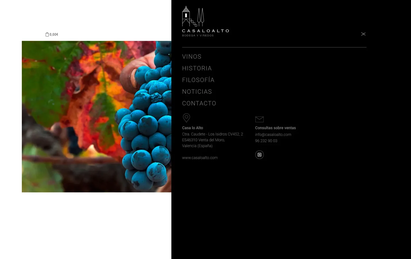 Desenvolupament web de l’e-commerce per a Casa lo Alto, finca vitivinícola amb celler fundat el 1976 a Venta del Moro. El projecte es duu a terme en col·laboració amb Bulldog Studio, responsable del disseny, implementant una plataforma de venda online a mida que reflecteix el caràcter de la marca en una experiència acurada, amb especial atenció als detalls en la interacció i el comportament visual.