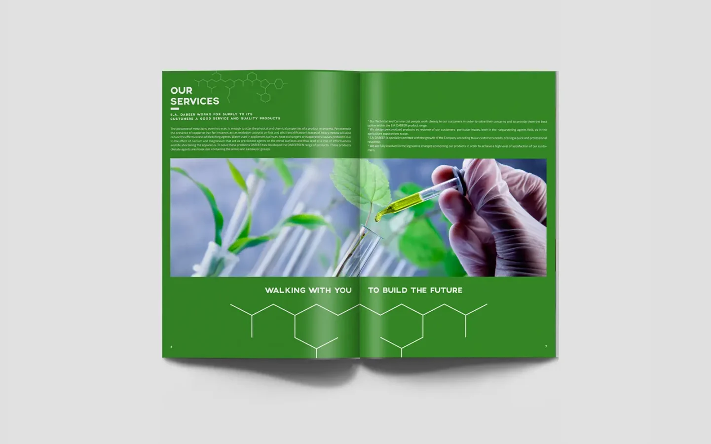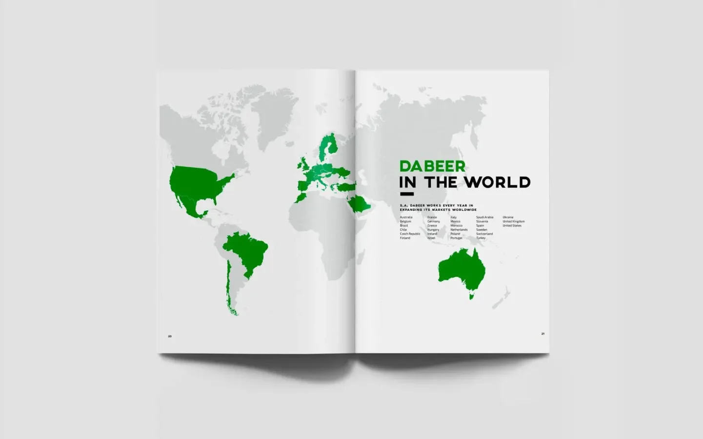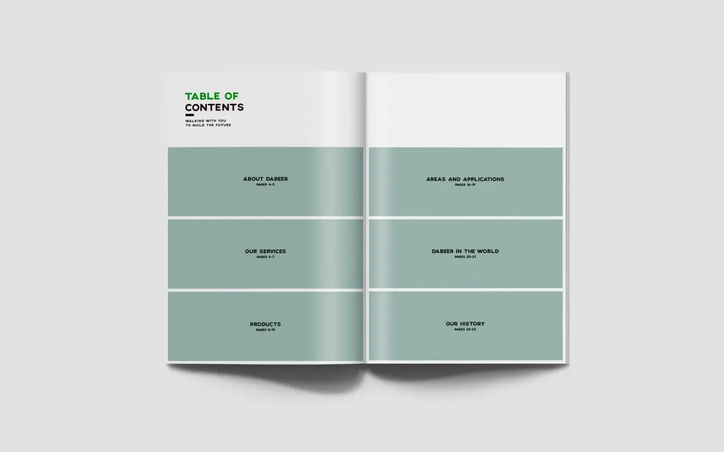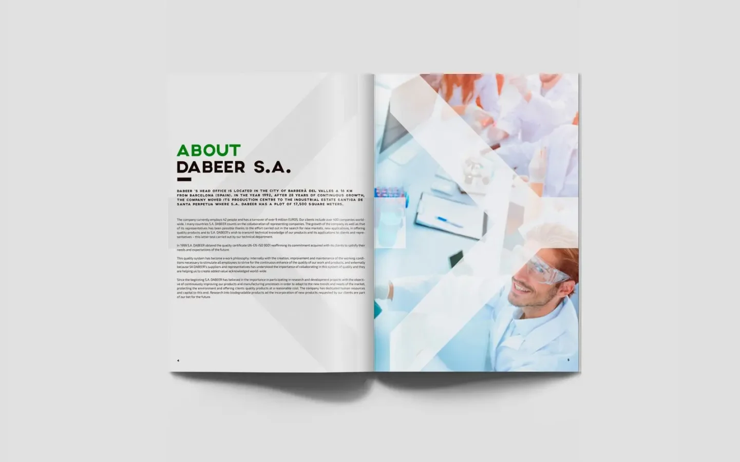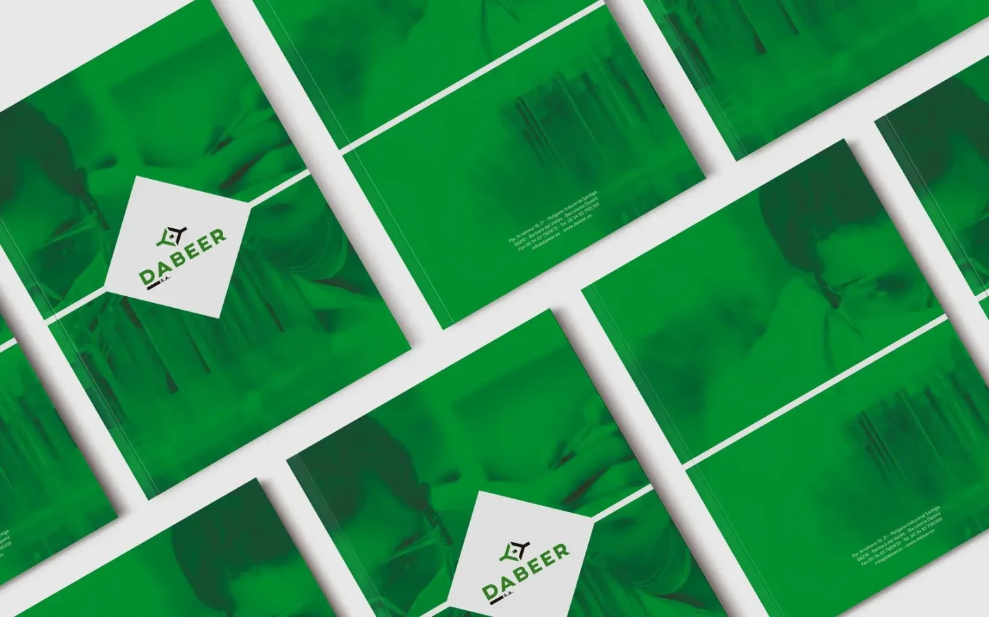 Disseny de catàleg corporatiu per a Dabeer S.A., pensat per oferir a l’equip comercial una eina de presentació estructurada. El sistema agrupa serveis, capacitats i gamma de productes en un suport físic alineat amb la identitat de l’empresa, facilitant-ne l’ús en entorns comercials.