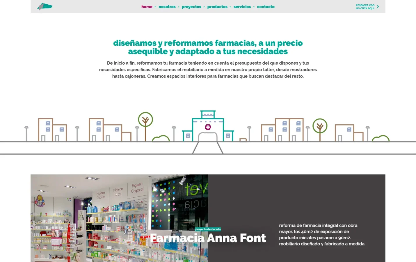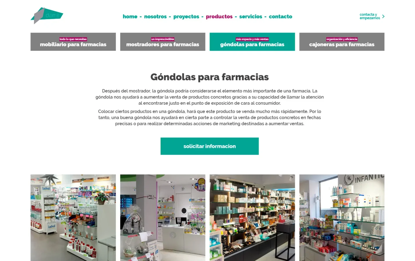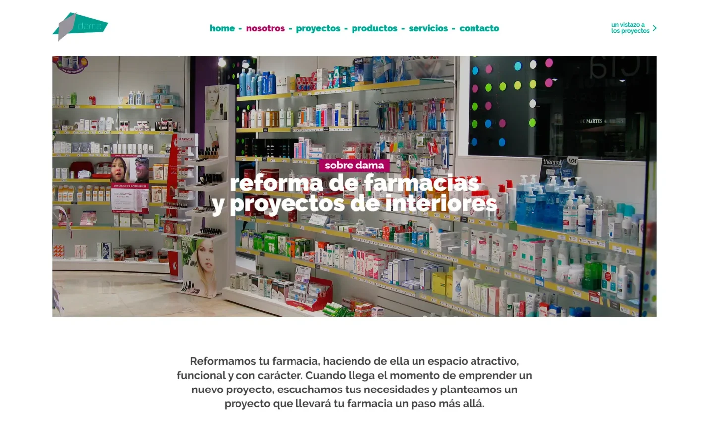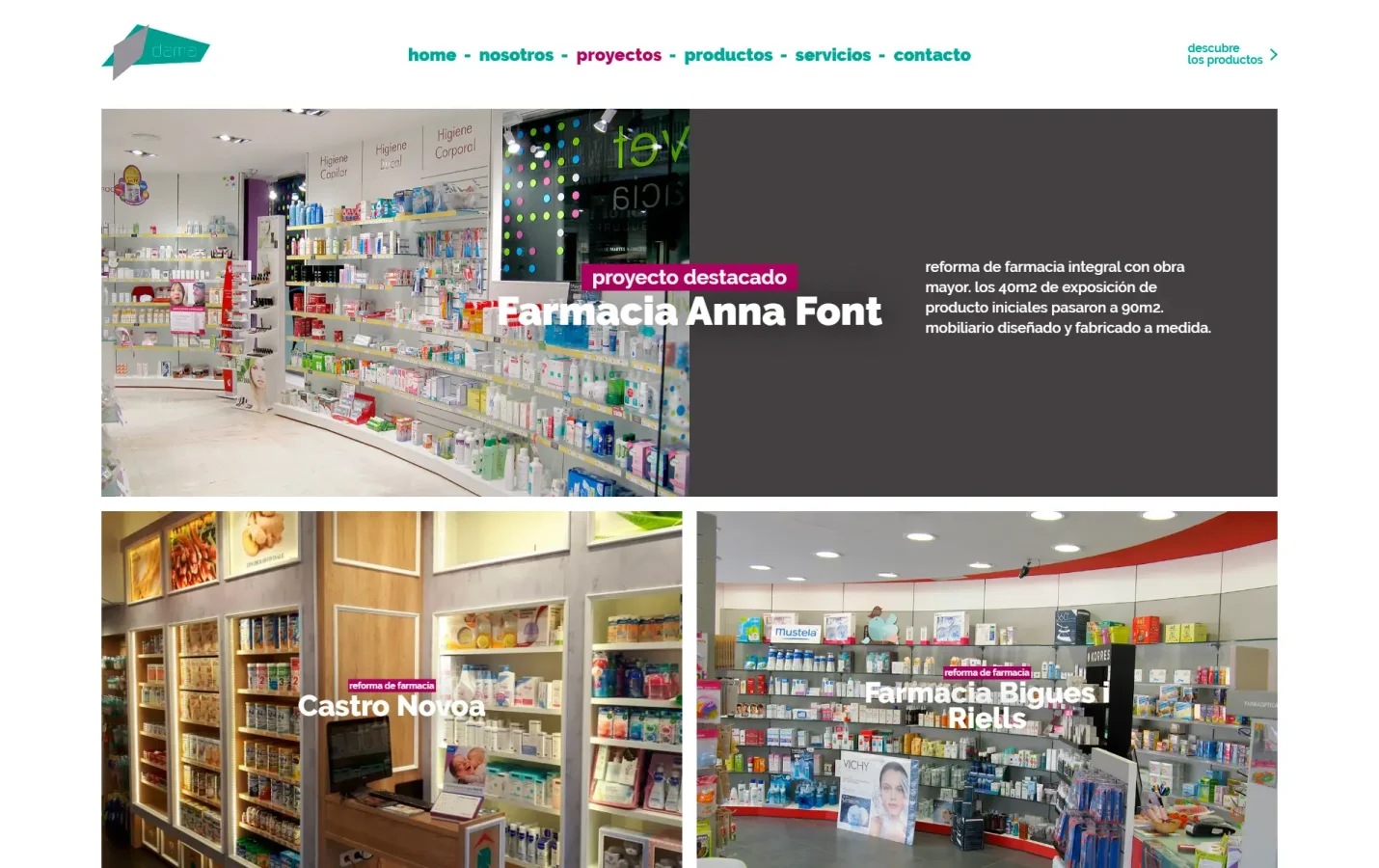Disseny i desenvolupament web per a Dama, empresa especialitzada en el disseny i la reforma de farmàcies a Barcelona. El projecte crea un entorn visual acurat que funciona com a eina comercial, organitzant els continguts per facilitar la navegació i dirigir l’experiència cap a la generació d’oportunitats. Paral·lelament, s’ha optimitzat el SEO tècnic, aconseguint posicionar el lloc a la primera pàgina per a cerques rellevants del sector.