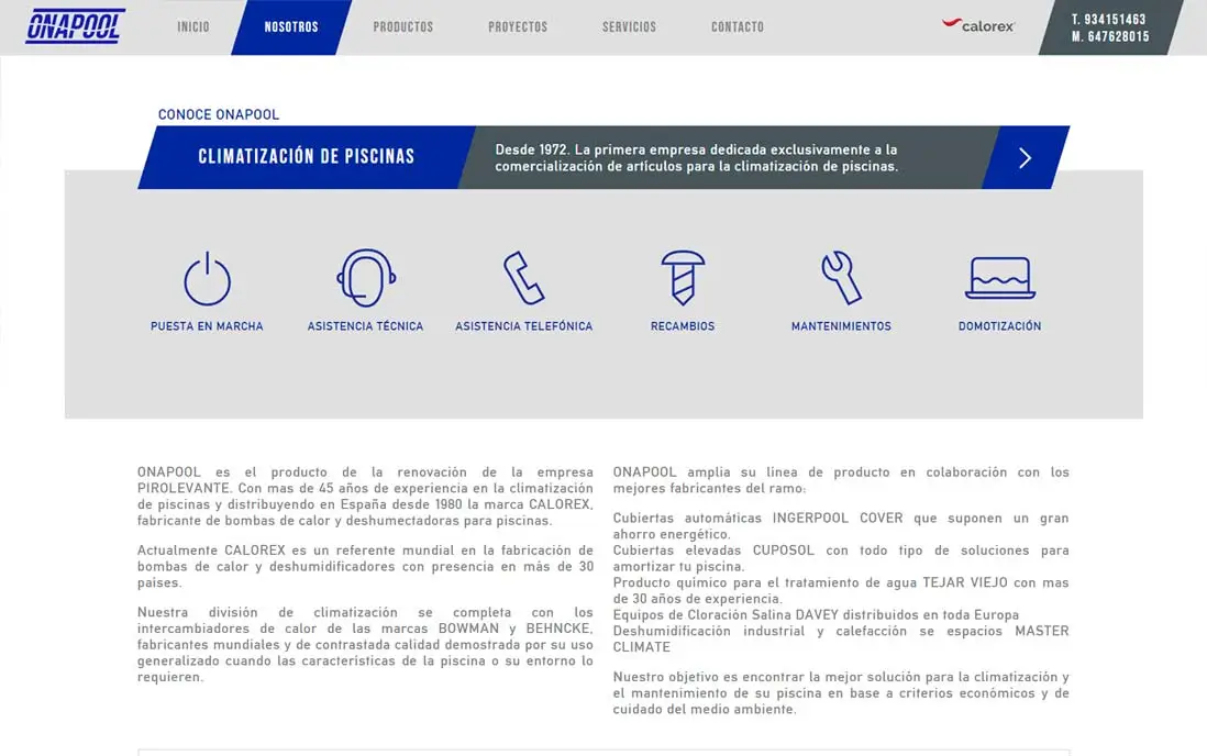 Disseny i desenvolupament web per a Onapool, empresa especialitzada en la distribució de climatitzadors. El projecte dona continuïtat a la identitat de marca, adaptant-ne el llenguatge a l’entorn digital amb una estructura clara i enfocada al producte. El resultat és una web funcional i directa, amb una navegació àgil pensada per facilitar la comprensió de l’oferta i millorar la interacció de l’usuari final.