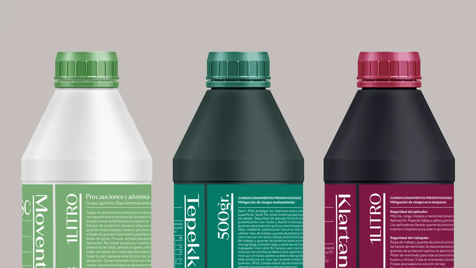 La proposta gràfica posa l’accent en la llegibilitat, la coherència i la percepció de fiabilitat del producte. La composició, la tipografia i la disposició dels elements transmeten sensació de control i professionalitat, responent a les necessitats de l’aplicador i del sector agrícola.