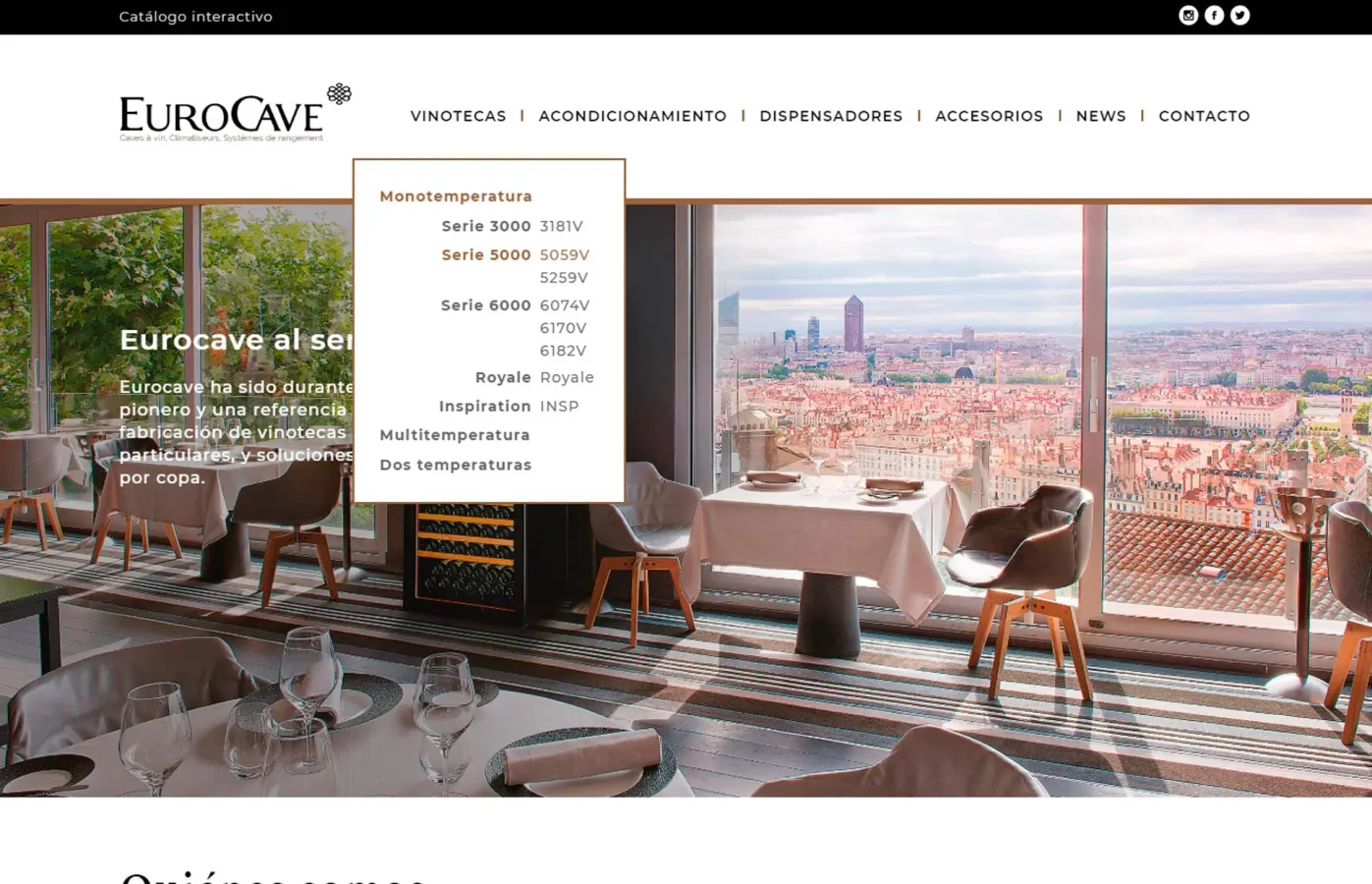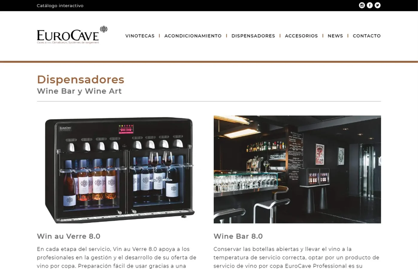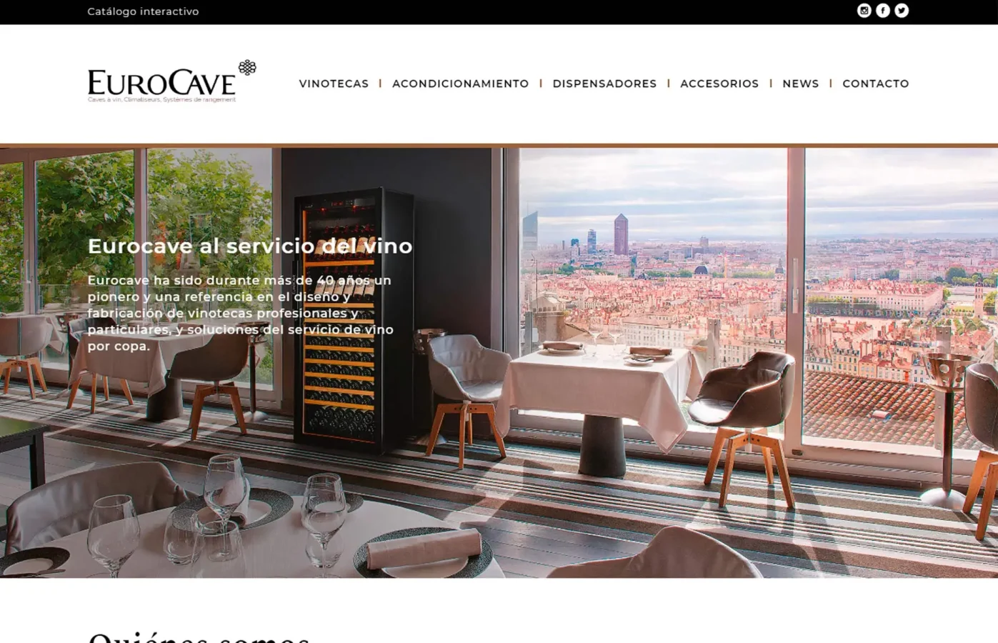 Disseny i desenvolupament web per a EuroCave, empresa pionera amb més de 40 anys d’experiència en la creació de vinoteques i solucions per al servei de vi a copes. Un projecte realitzat en col·laboració amb Bulldog Studio, amb una plataforma alineada amb el seu posicionament i enfocada a mostrar clarament productes i solucions.