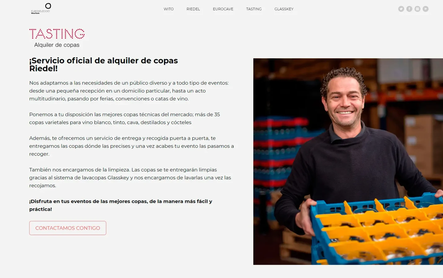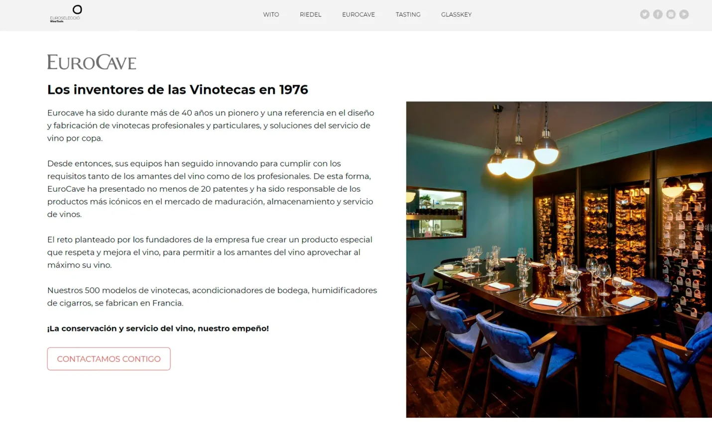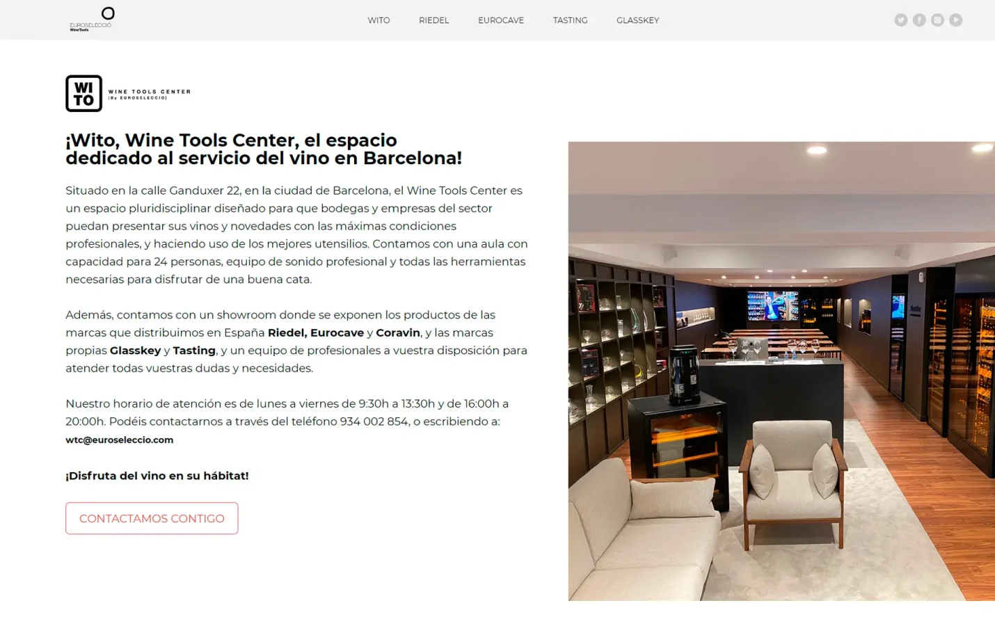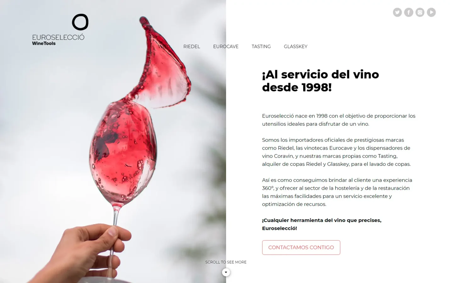 Desenvolupament web per a Euroselecció, empresa especialitzada en el sector del vi amb una oferta que inclou vinoteques, copes i serveis de lloguer per a esdeveniments. El projecte consisteix en la creació d’un lloc web d’una sola pàgina, fet a mida a partir d’un disseny de Bulldog Studio, que estructura de manera clara la presentació de productes i serveis en un entorn singular.