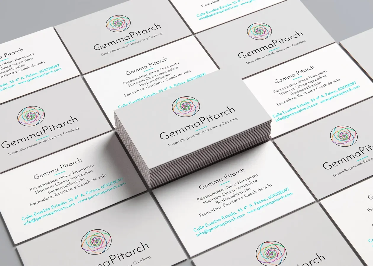 Disseny de la identitat corporativa per a Gemma Pitarch, professional especialitzada en desenvolupament personal, formació i coaching. El projecte crea un sistema visual que transmet proximitat, equilibri i creixement personal, present tant en el logotip com en els elements corporatius essencials.
