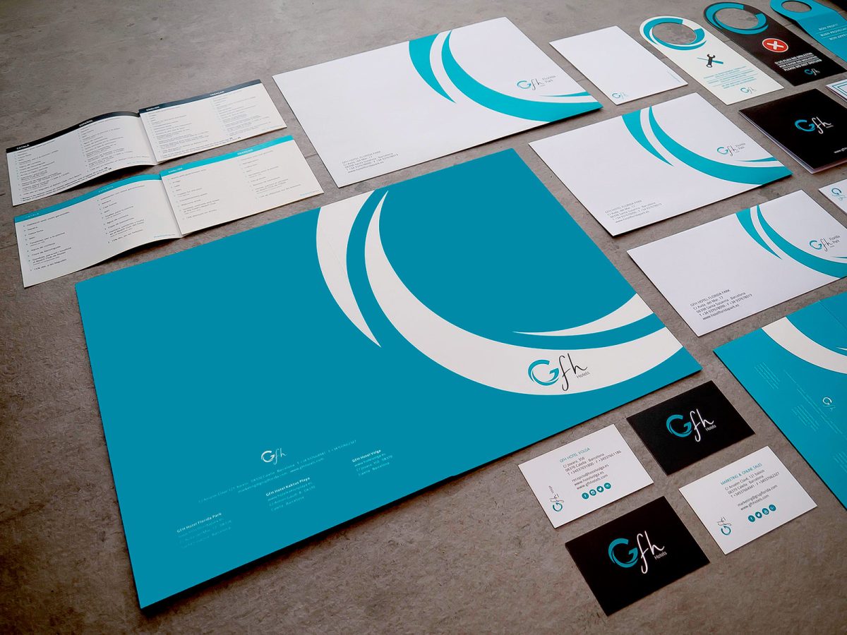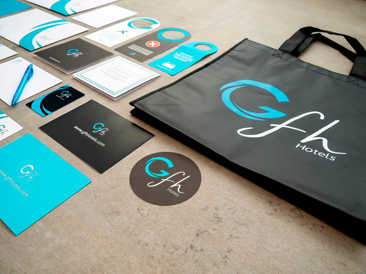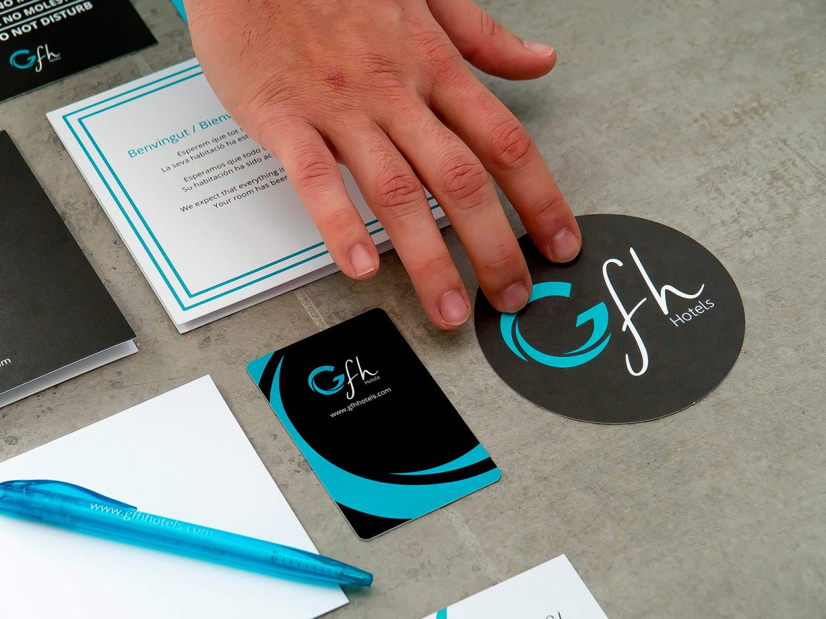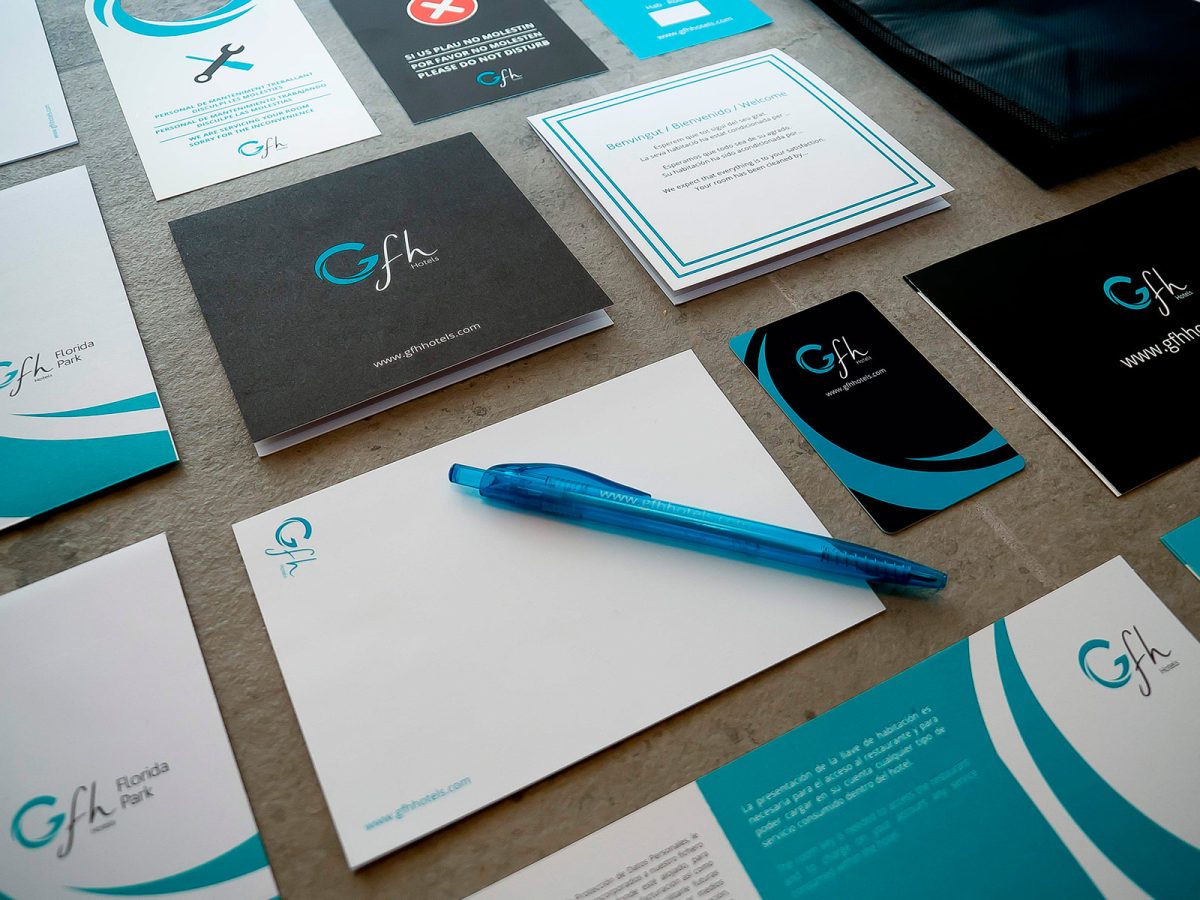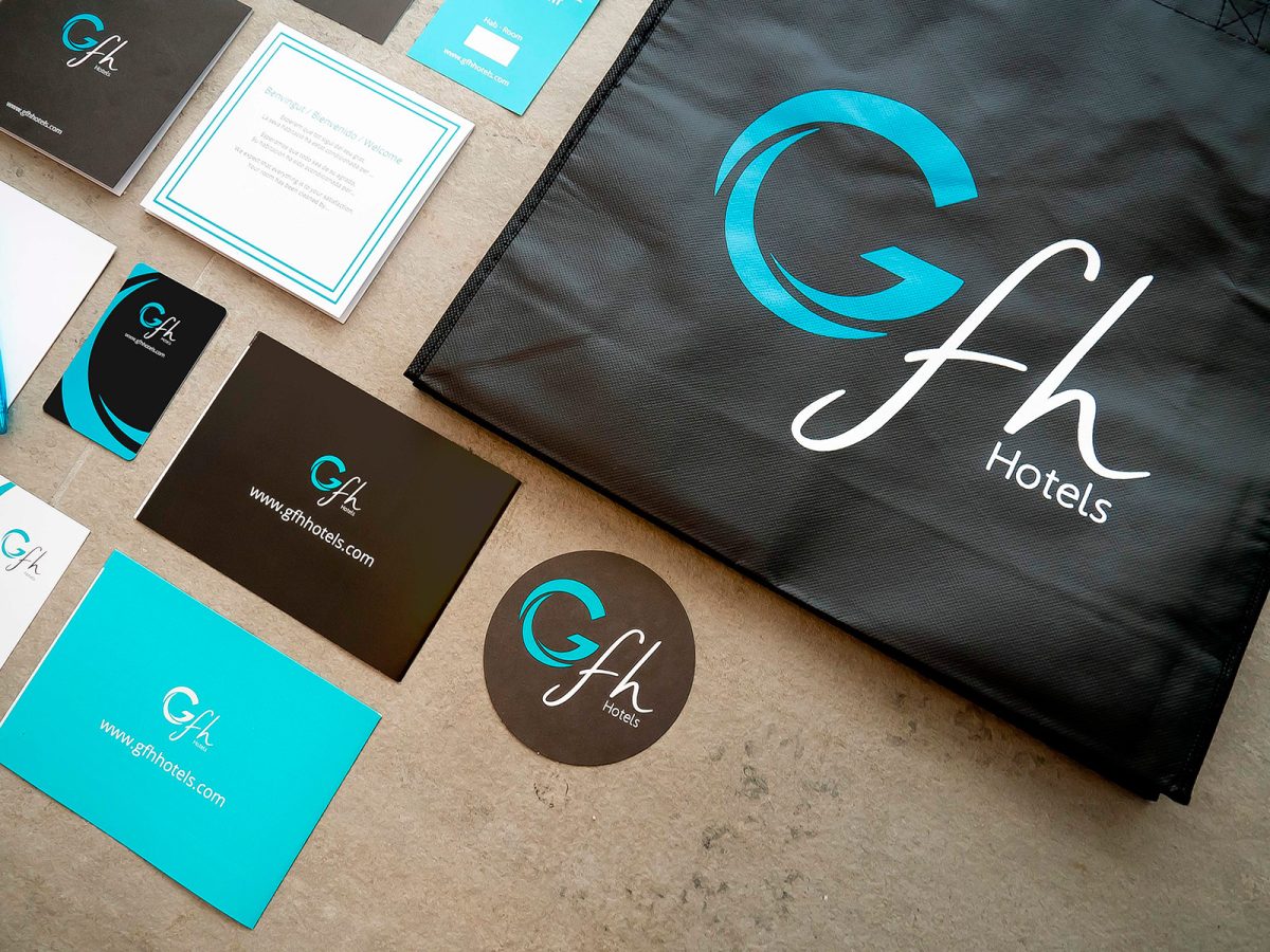 Implementació de la identitat corporativa per a GFH Hotels, adaptant el sistema visual de la marca a suports físics i materials operatius. El projecte garanteix coherència gràfica, llegibilitat i consistència en tots els punts de contacte, des de la papereria corporativa fins a les peces de comunicació comercial.