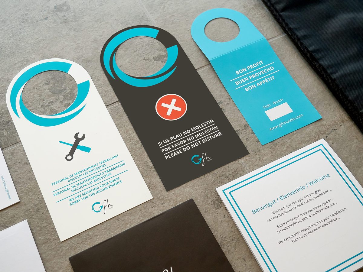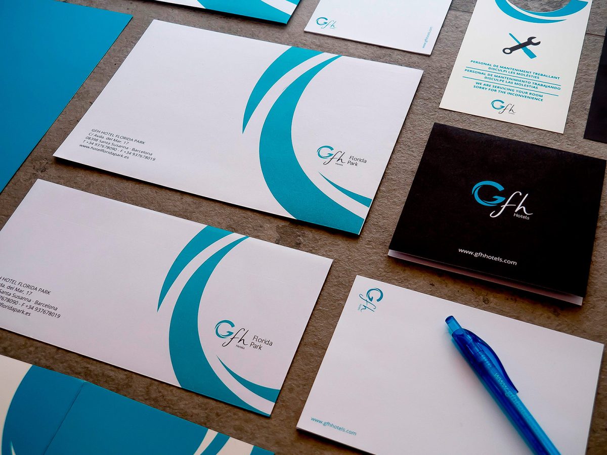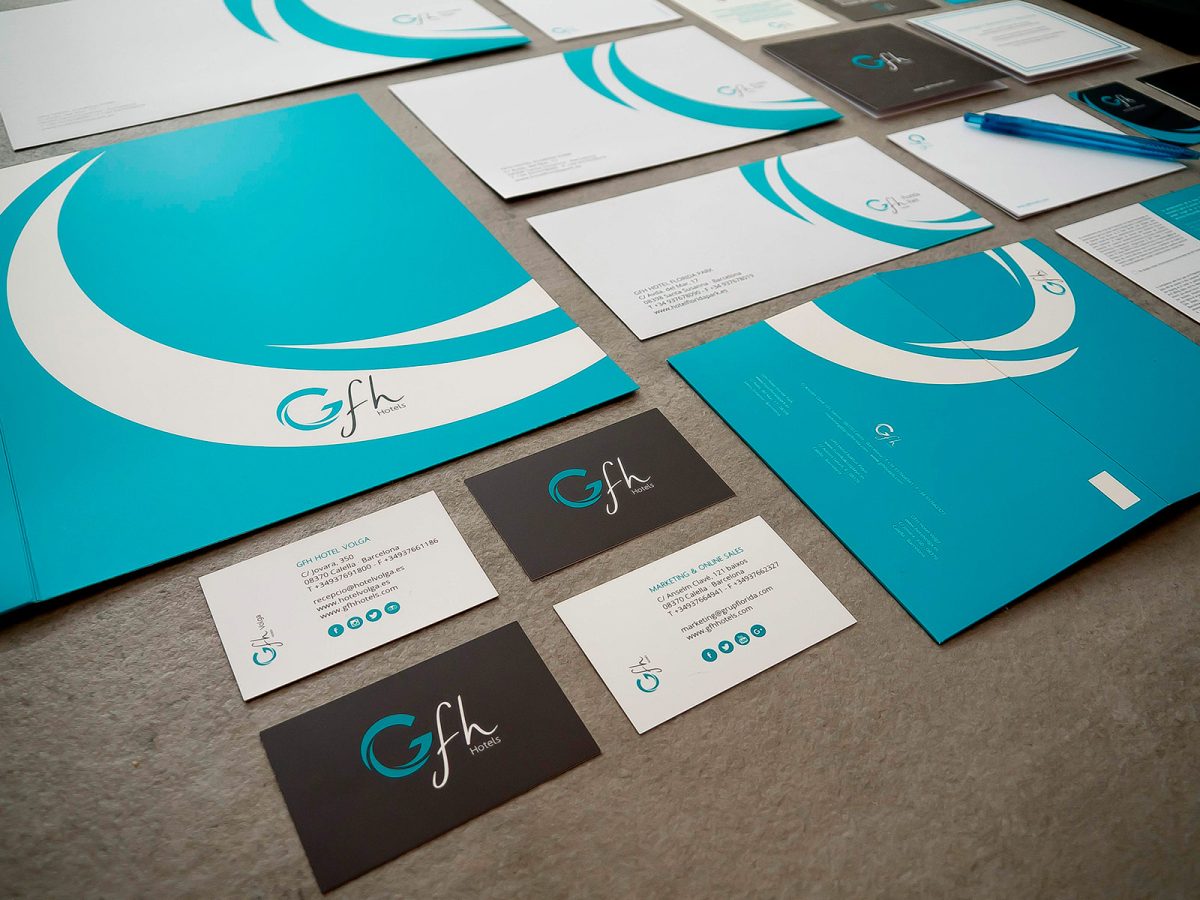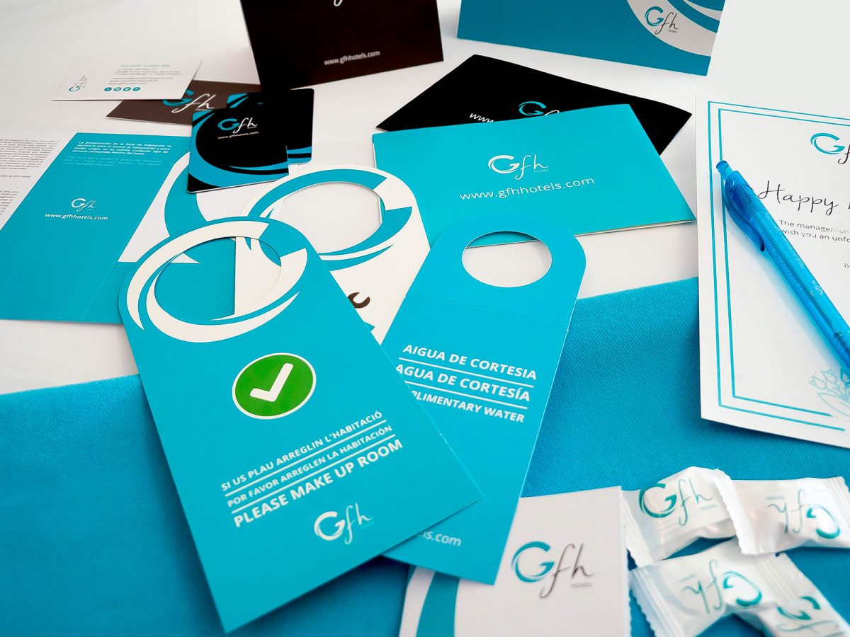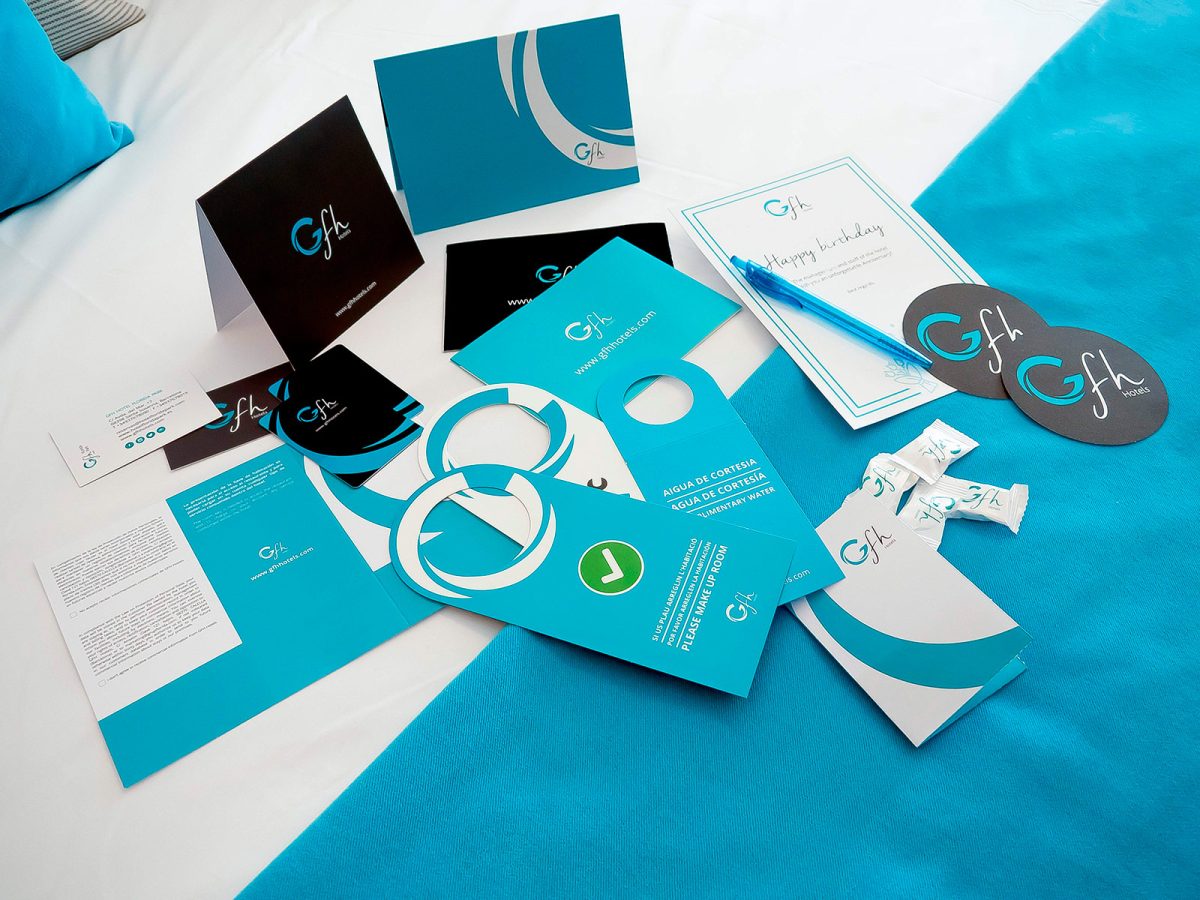 Implementació de la identitat corporativa per a GFH Hotels, adaptant el sistema visual de la marca a suports físics i materials operatius. El projecte garanteix coherència gràfica, llegibilitat i consistència en tots els punts de contacte, des de la papereria corporativa fins a les peces de comunicació comercial.