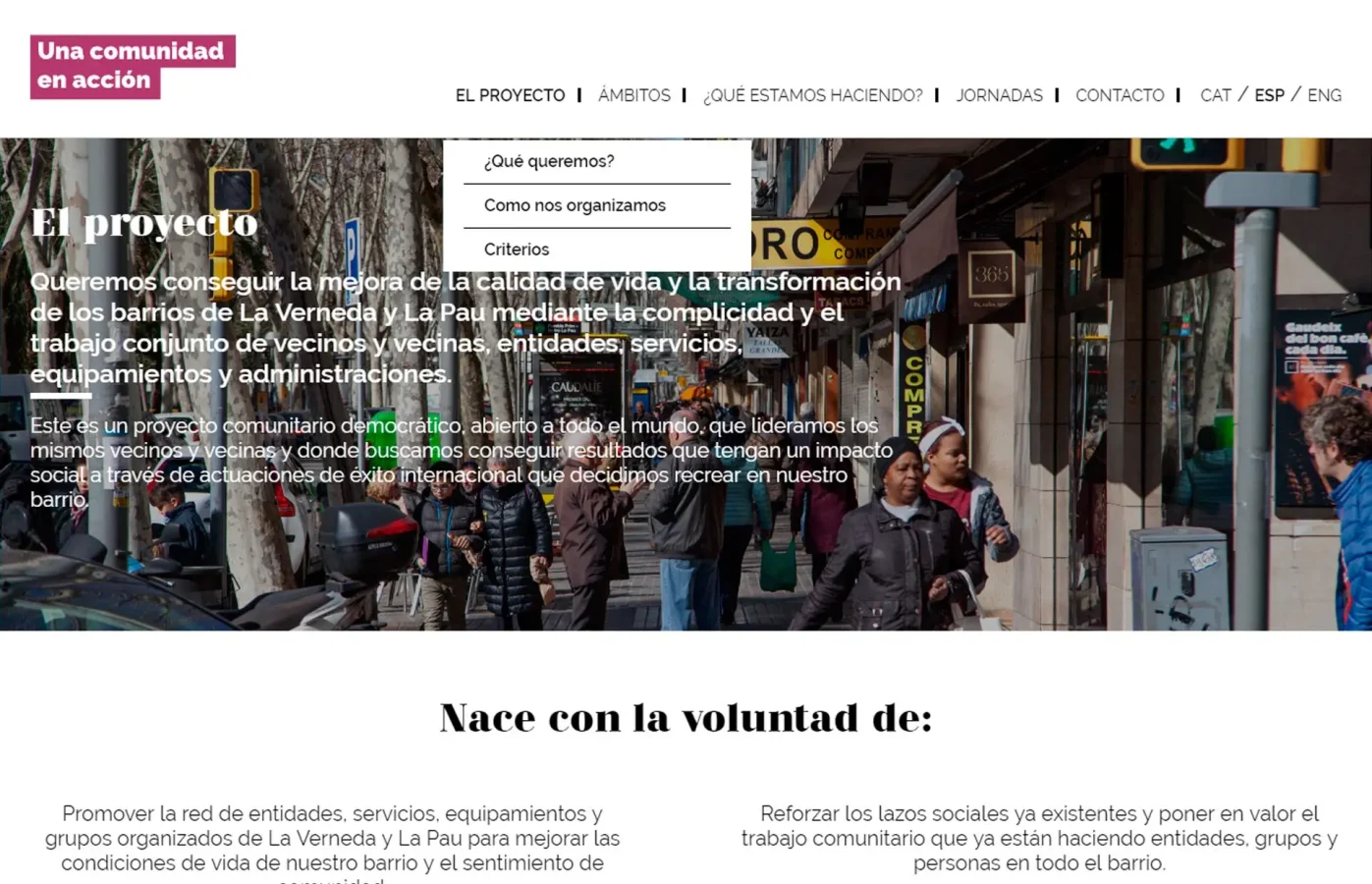 Desenvolupament i maquetació web per al projecte comunitari de La Verneda i la Pau, una iniciativa que impulsa la millora del barri a través de la col·laboració entre veïns, entitats i administracions. El projecte es duu a terme juntament amb Bulldog Studio, creant una plataforma clara i accessible que afavoreix la comunicació, la participació i la gestió de continguts.
