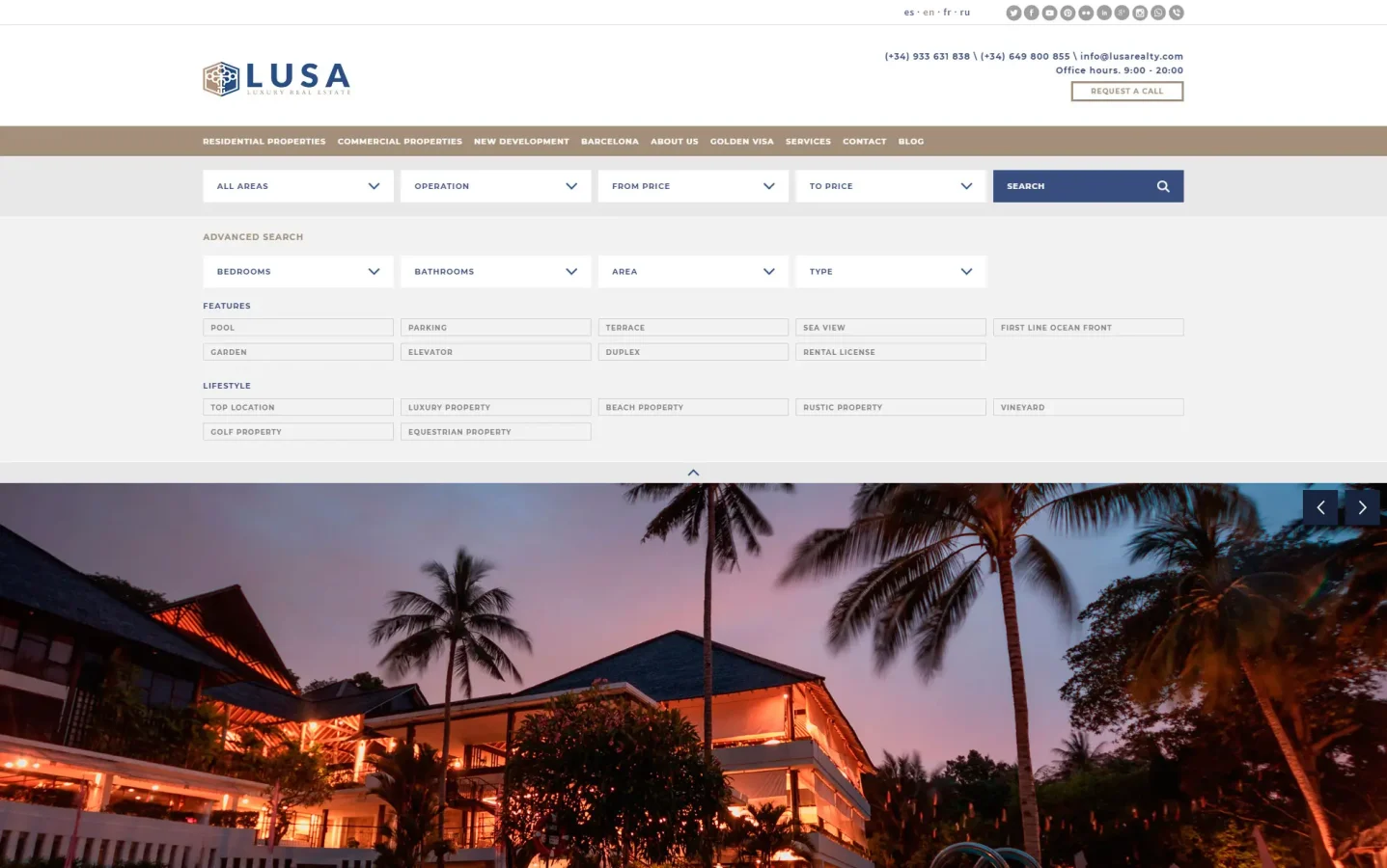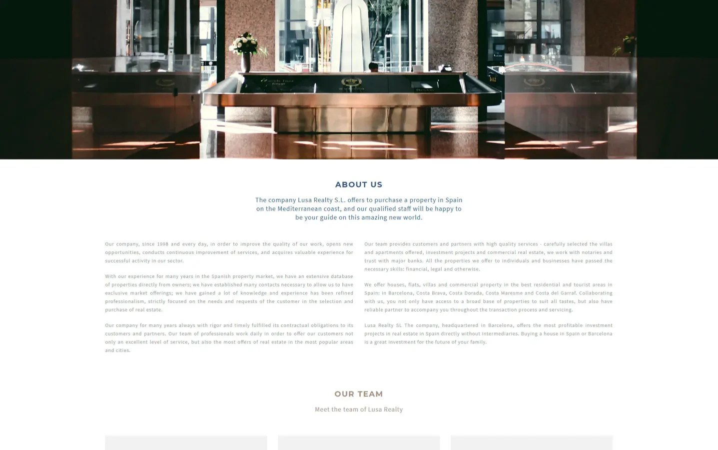 Disseny web i direcció d’art per a Lusa Realty, immobiliària de luxe a Barcelona. El projecte aposta per una línia visual sòbria i elegant, fidel a la identitat existent, i desenvolupa una interfície pensada per mostrar les propietats amb claredat, prioritzant la navegació, l’estructura de continguts i l’experiència d’usuari.