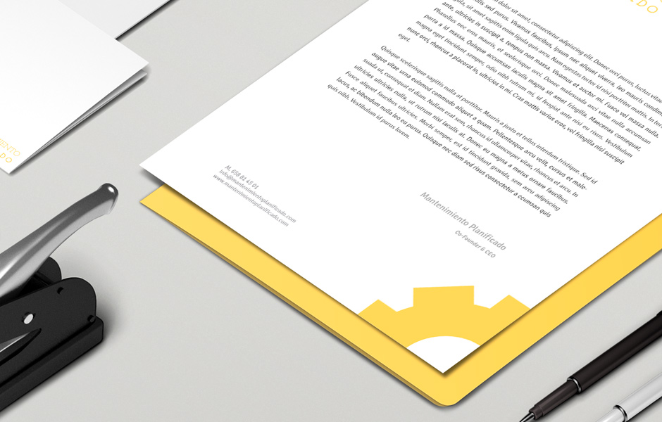 Disseny de la identitat corporativa per a Mantenimiento Planificado. El projecte estableix un sistema visual pensat per transmetre control, previsió i rigor tècnic, en sintonia amb el caràcter operatiu del servei.