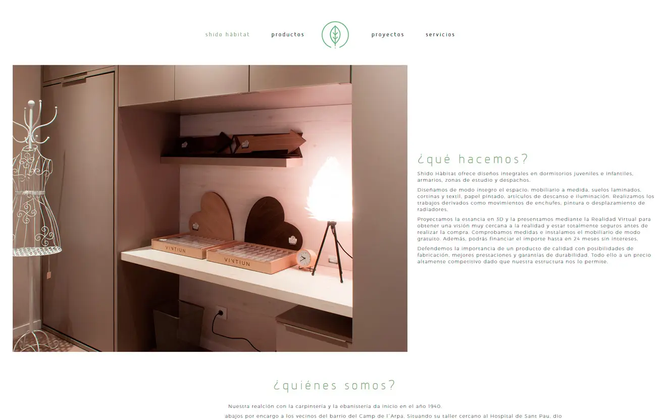 Disseny i maquetació web per a Shido Hàbitat, botiga de mobiliari a Barcelona amb una trajectòria familiar que s’inicia el 1940. El projecte crea un entorn digital que reflecteix el seu caràcter i proposta de valor, organitzant l’oferta de disseny integral —dormitoris, oficines i armaris— dins d’una estructura clara i coherent.