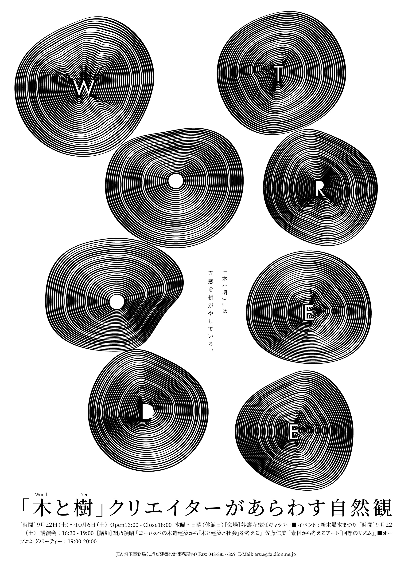 The poster uses photographs of hundreds of tree rings as references, digitally transforming them into abstract shapes that represent a tree trunk’s cross-section.