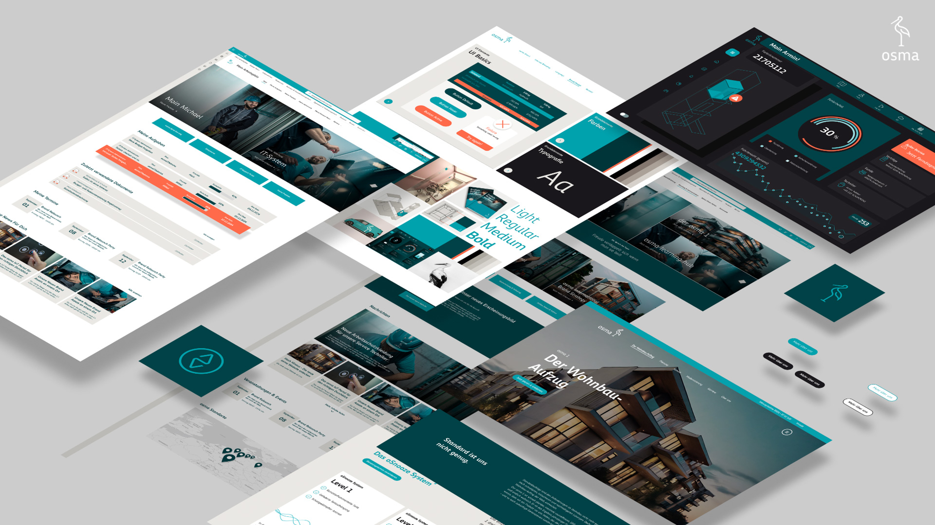 El rediseño de osma no se limita a lo digital: es una reconstrucción visual de la marca. El nuevo sistema de identidad combina un logotipo depurado, tipografía personalizada, paleta cromática cálida y una dirección de arte coherente con los valores de precisión, fiabilidad y humanidad. Los colores suaves, con predominio de tonos beige, azul acero y gris técnico, transmiten confianza y sofisticación industrial, alejándose del frío minimalismo tecnológico habitual en el sector.
